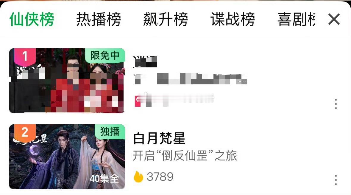 白鹿 敖瑞鹏白月梵星开播一周年 爱奇艺热搜榜电视剧榜登顶第一,仙侠榜第二,还是一年前的剧啊
