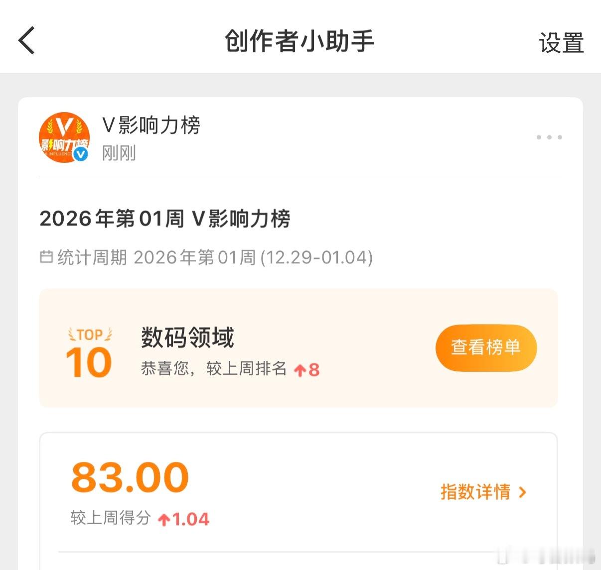恭喜毒舌数码荣登“V影响力排行榜”前10,继续努力