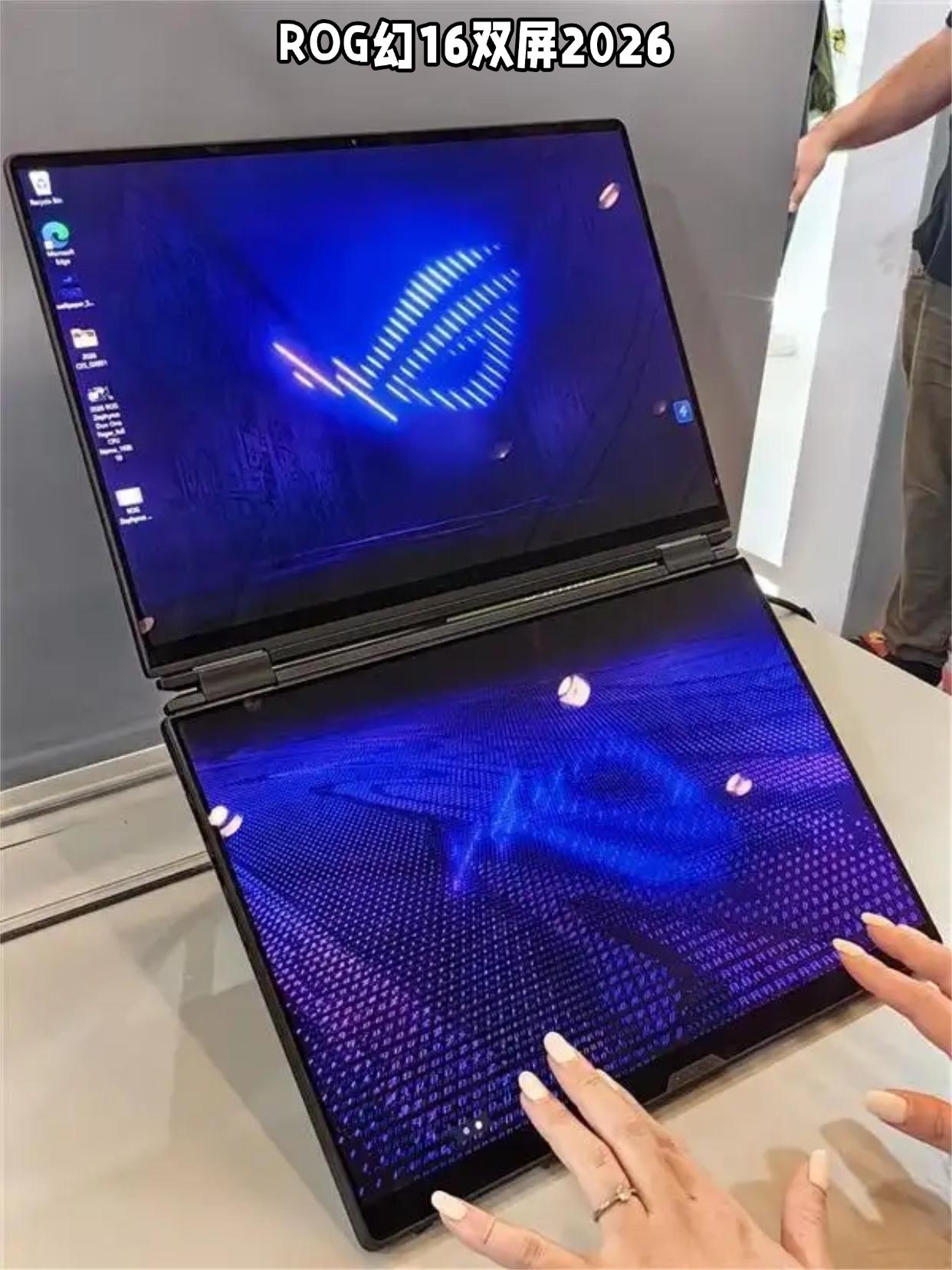笔记本整花活,我就服ROG和联想! 今年的CES2026我瞄了两眼,本以为又是堆参数的机器,没想到还是有笔记本厂商能做出点花样。联想展示了 Legion Pro Rollable 纵向卷轴屏笔记本,屏幕能从左右两边伸展出来,普通小屏秒变超大24英寸大屏,这对于经常出差想获得大屏的用户挺有用的,只是目前还是概念机,屏幕显示形态都有点瑕疵,而且估计得三四万块吧。 ROG这边发布了ROG 幻16 双屏亮点是屏幕素质很高,双屏都是2.8K的ROG星云原画屏,峰值亮度1100nits,DCI-P3色域、ΔE<1,120Hz刷新率与0.2ms响应速度,形态有分享、帐篷、书本、双屏等,我很喜欢那个帐篷,感觉就是两个人在用一台电脑,分享模式则能和客户一起看超21英寸大屏,沟通效率更高。 ROG幻16双屏的性能也很硬核,酷睿Ultra 9 386H、RTX 5090,150W性能释放和一些游戏本差不多了,而且冰川散热堆料多,有90Wh电池、35段光线矩阵RGB键盘(可隐藏)、铝金属机身等等,整体还只有1.95cm、重量2.85kg,屏幕素质比以往双屏笔记本高、也更薄,ROG目前已经发布了,就看价格咋样了,你们猜猜多少? 笔记本电脑 联想 联想卷轴屏 ROG