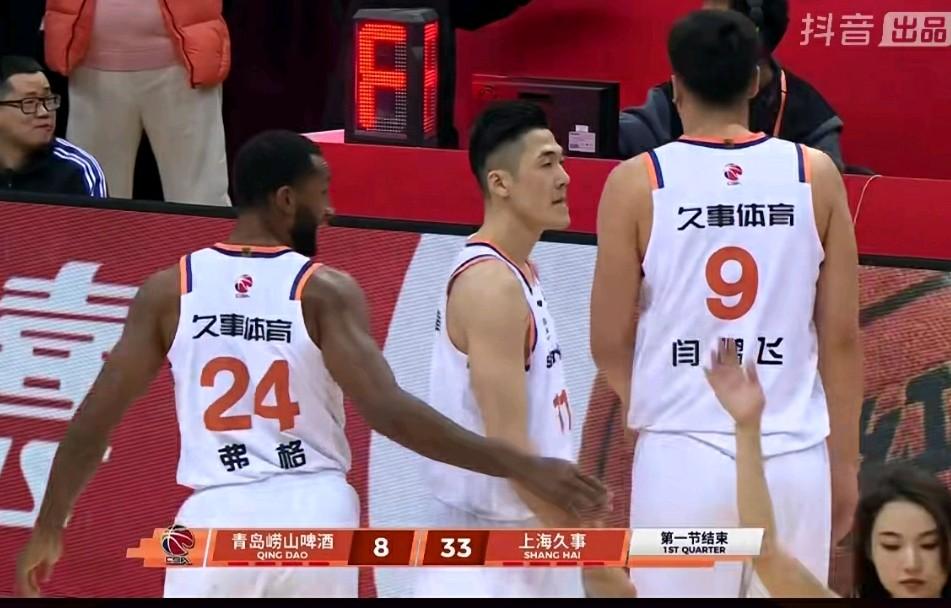 太残暴了!CBA首节惊现恐怖比分差(8:33),上海久事第一节就把青岛崂山打爆了,按说青岛崂山本赛季打的非常出色,排名联赛第五,怎么面对上海久事不堪一击?这还是主场作战,第一节就命中2个球,2/18,三分1/10,反观上海打的风生水起,尤其内线的王奶奶打嗨了,单节4/4,100%的命中率,古德温和闫鹏飞都有不错的表现,张公子场场都有炸裂的空接表演,不得不说,杨瀚森走了以后,青岛崂山的内线堪忧啊,上海CBA联赛第一实至名归,本赛季冲冠有戏了! 上海男篮