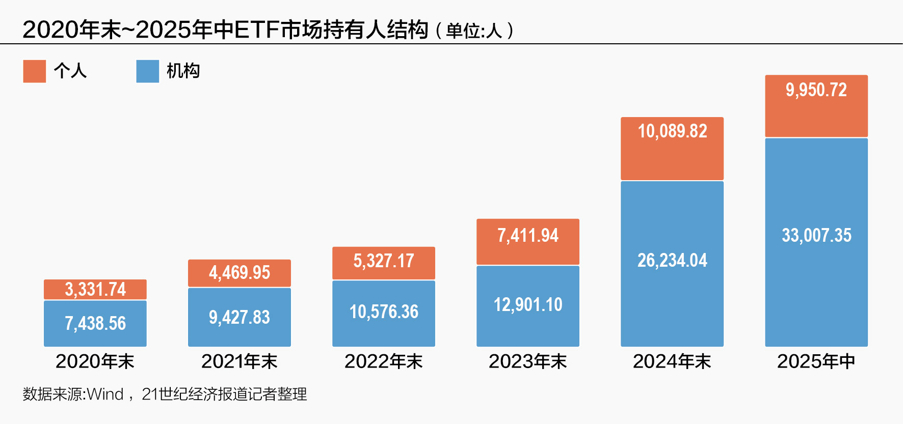 从2020年年末至2025年年中,中国ETF市场的持有人结构,最核心的特征是机构投资者主导地位的巩固。
