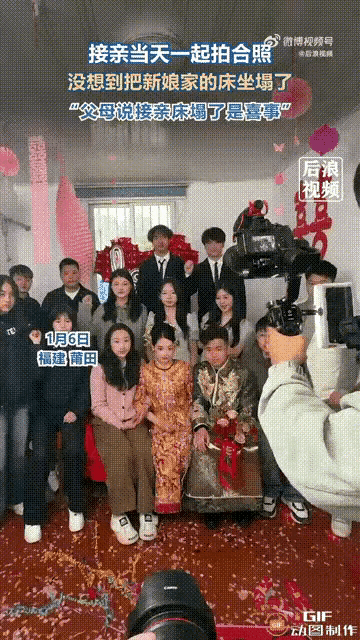 喜宴未开,先听床榻之声,你可见过这等新鲜事?摄影师原本张罗着留影,新郎新娘伴郎伴娘一伙人欢欢喜喜挤上床沿,谁曾想镜头还没对上,“咔嚓咔嚓”几声脆响——好端端的婚床竟塌了个措手不及! 满屋子红火喜庆霎时静了半秒。新娘子凤冠霞帔坐在当中,身子一歪,手里抱的苹果骨碌碌滚下地;新郎官眼疾手快揽住她,自己倒陷进软塌塌的被褥堆里。伴娘鬓边的珠花颤巍巍晃,伴郎脚上的新皮鞋在半空蹬了个空。后头看热闹的亲友们先惊后乐,不知谁“噗嗤”笑出声来,这下可好,满堂哄笑简直要掀翻屋顶。 你说这事晦气?且慢定论。老话讲“塞翁失马,焉知非福”,那摄影师可是个明白人。寻常婚照哪个不是摆着笑脸硬绷着?偏这意外瞬间,惊慌里透着关切,狼狈中藏着温情,倒比精心设计的场面生动百倍。他手里快门按得飞快,真正是“踏破铁鞋无觅处,得来全不费工夫”。 生活往往这般,刻意求全反易失,无心插柳却成荫。你看那对新人,起初惊得花容失色,转眼便相视笑作一团。伴郎扶起伴娘,互相拍打身上并不存在的灰尘,眼角笑纹里都是年轻的光。这场意外倒像块试金石,试出了真情实意,试出了豁达心胸。 多年后翻开相册,规规矩矩的合影或许模糊了记忆,但这张“床塌惊魂”定会让人眼前一亮。原来最珍贵的并非万事完美,而是当意外来临,有人伸手相扶,有人开怀一笑,把插曲谱成独特的旋律。婚姻之道不也如此?哪有永远平整的红毯,倒是这般笑对无常的智慧,才撑得起往后柴米油盐的日子。 你瞧,此刻屋里笑声比爆竹还响。红烛高照下,塌了的床榻反成了欢乐的注脚——原来幸福从来不怕意外,怕的是少了这份化窘为趣的灵气。这婚结得,值了!大婚当天的情景 婚礼事件