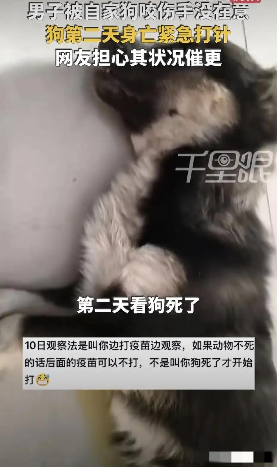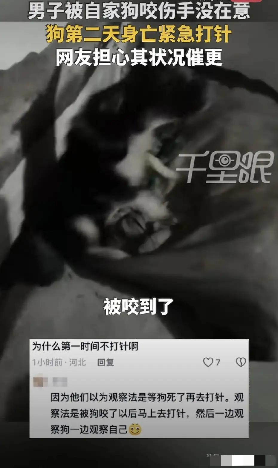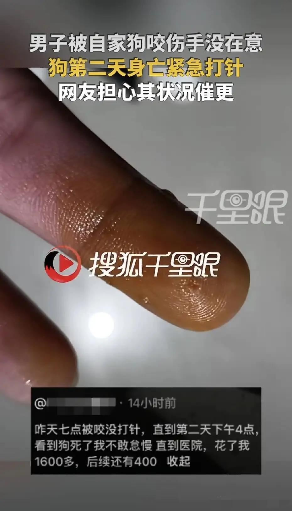 男子被狗咬伤,第二天狗身亡,男子紧急去医院打针!近日,河南,李先生在家,不小心被自己家的狗咬一口,好巧不巧咬了手指头。 因为是自己家的狗狗,所以李先生毫不在乎,也没有在意。 狗狗把他咬了,他还拍拍屁股说:“自家娃,没事!” 谁也没有想到,第二天,咬他的狗居然突然暴毙。 这可把李先生吓坏了。 他赶紧开车去医院,赶紧注射狂犬疫苗、免疫球蛋白。 李先生的这个狗狗,很小,不到一年,才养了200多天。 它是一只小狗,平常很老实,对自己家人很和善。 他们一家人都很喜欢这个小狗。 不过,不知道因为什么原因,这几天狗狗有些不舒服的样子。 李先生就宠溺的摸了摸小狗。 谁知道,就是这一摸,让这个平常温顺的小狗,突然锐利起来。 它照着李先生的手就咬了一口。 狗的牙齿很长,牙齿把李先生的手指肚子划了一道大口子。 李先生觉得自家的狗,不会有什么问题,就没有去医院打狂犬疫苗。 可是,第二天下午四点,这个狗狗居然突然死了。 这可不是好信号。 李先生吓坏了,看着突然暴毙的小狗,他感到了恐惧。 李先生着急忙慌的跑去医院,赶紧打了狂犬疫苗。 其实,李先生被狗狗咬伤这个事情,他做错了。 他应该第一时间用肥皂水把受伤的手指,用流动的水清洗。 第一时间赶紧去医院,打狂犬疫苗。 这是每一个被狗咬伤的人,必须要做的,必须知道的知识。 不能疼狂犬疫苗钱,更不能抱着侥幸心理。 因为狂犬病百分百治不了。 我邻居曾经被狗咬过,他还把狗打死了,吃了狗肉。 不到10天,他就生病了,怕水怕光。 去医院一检查就是狂犬病。 后来,把他一个人放在一个黑屋子里。 再后来,他死了。 所以,被狗咬了,赶紧去医院,不能大意。 千万可别以为,就破了一块小皮,没事。 别以为自己家的狗,没事。 不能抱有侥幸心理。 病毒不挑伤口大小,病毒不挑侥幸心理。 狂犬病大家都知道,狂犬病没有奇迹,一旦发病,死亡率≈100% 希望李先生只是受了惊吓,不会中招!被狗咬伤案 恶狗伤小孩 恶狗咬伤 狗咬伤