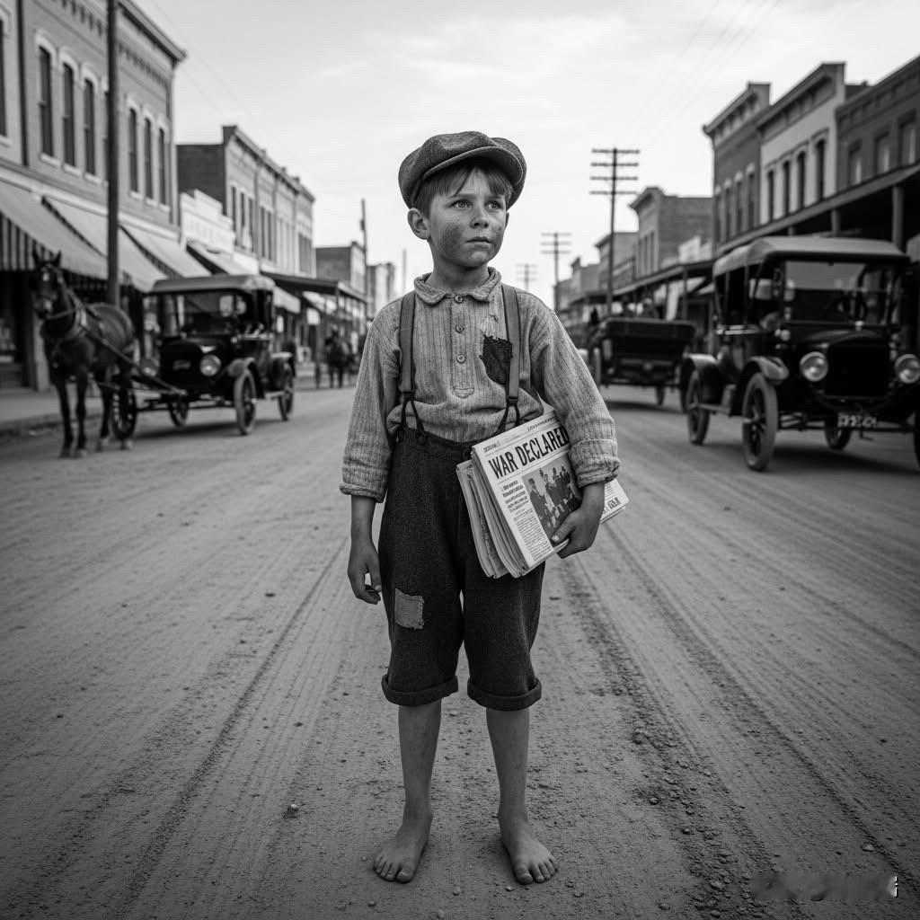 报童,德克萨斯州,1913年 1913年德克萨斯州一个寒冷的清晨,凌晨三点,一个名叫伊莱的赤脚男孩开始了一天的工作。他腋下夹着一摞报纸,穿梭于酒吧和面包店之间,向睡眼惺忪的镇民们大声报着新闻标题。到了早上八点,他坐在教室里,沾满墨水的手指紧紧握着铅笔。路易斯·海因拍下了他的肖像——帽子歪戴,眼神坚定而充满决心。伊莱的故事只是成千上万个类似故事中的一个,在儿童保护法出台之前,孩子们一边工作一边学习。他的坚韧不拔的精神代代相传,成为在逆境中奋力拼搏的象征。