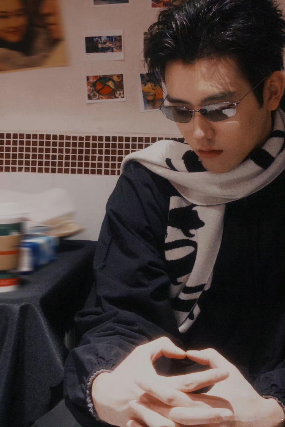 陈飞宇无框眼镜造型 无框镜配黑白围巾,这波酷帅氛围感谁顶得住啊