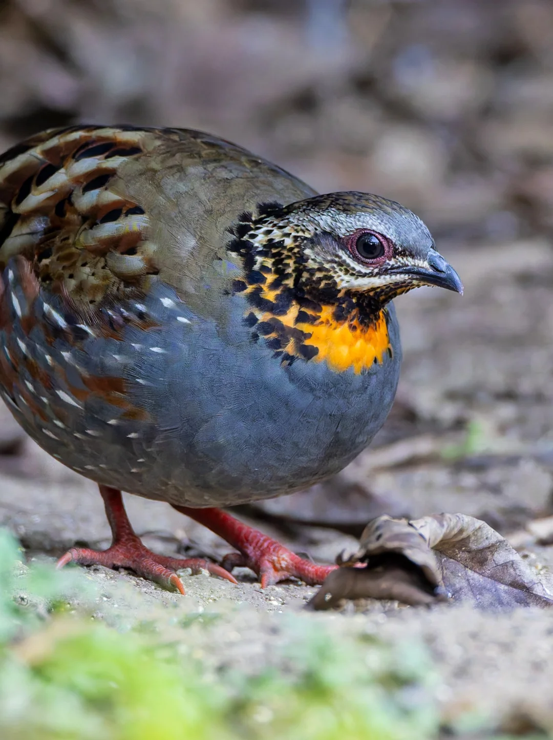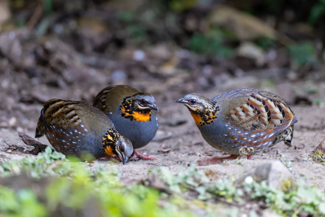 戴着橙色围脖的小鸡:红喉山鹧鸪