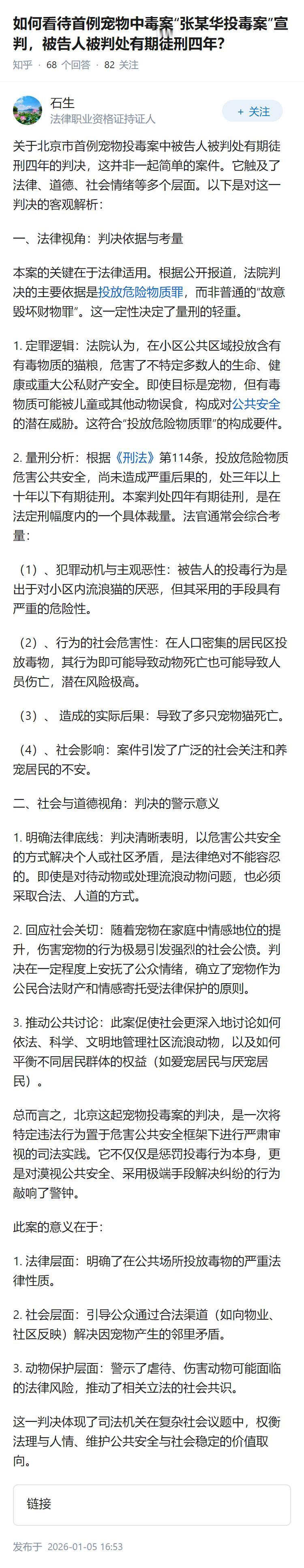 如何看待首例宠物中毒案“张某华投毒案”宣判,被告人被判处有期徒刑四年?