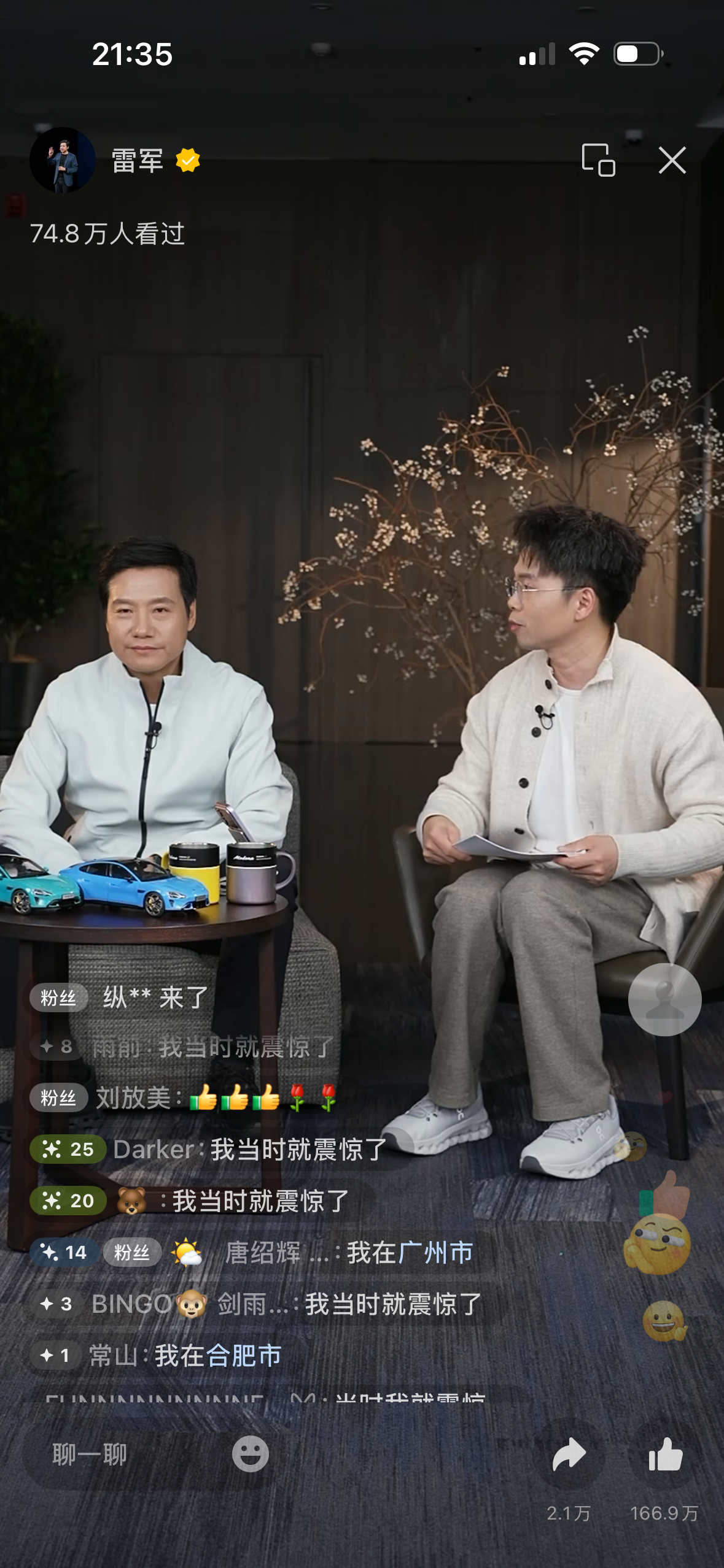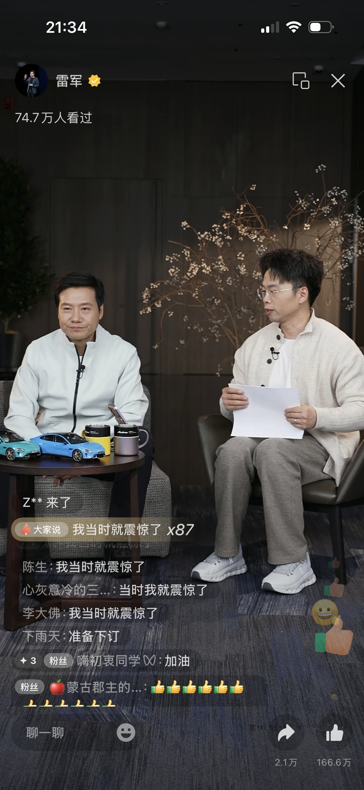 新一代小米SU7预计4月上市 去看了一眼小米的直播,评论开了,结果是这样