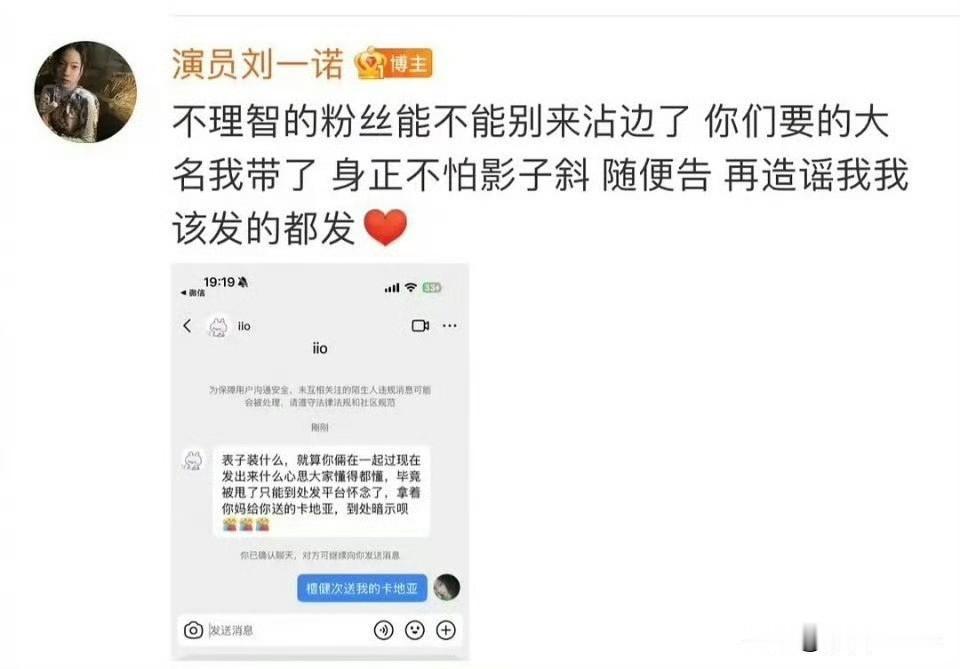 1月7日,刘一诺被质疑后带大名了! 提醒不理智粉丝别来沾边,直言本意没想公开,很