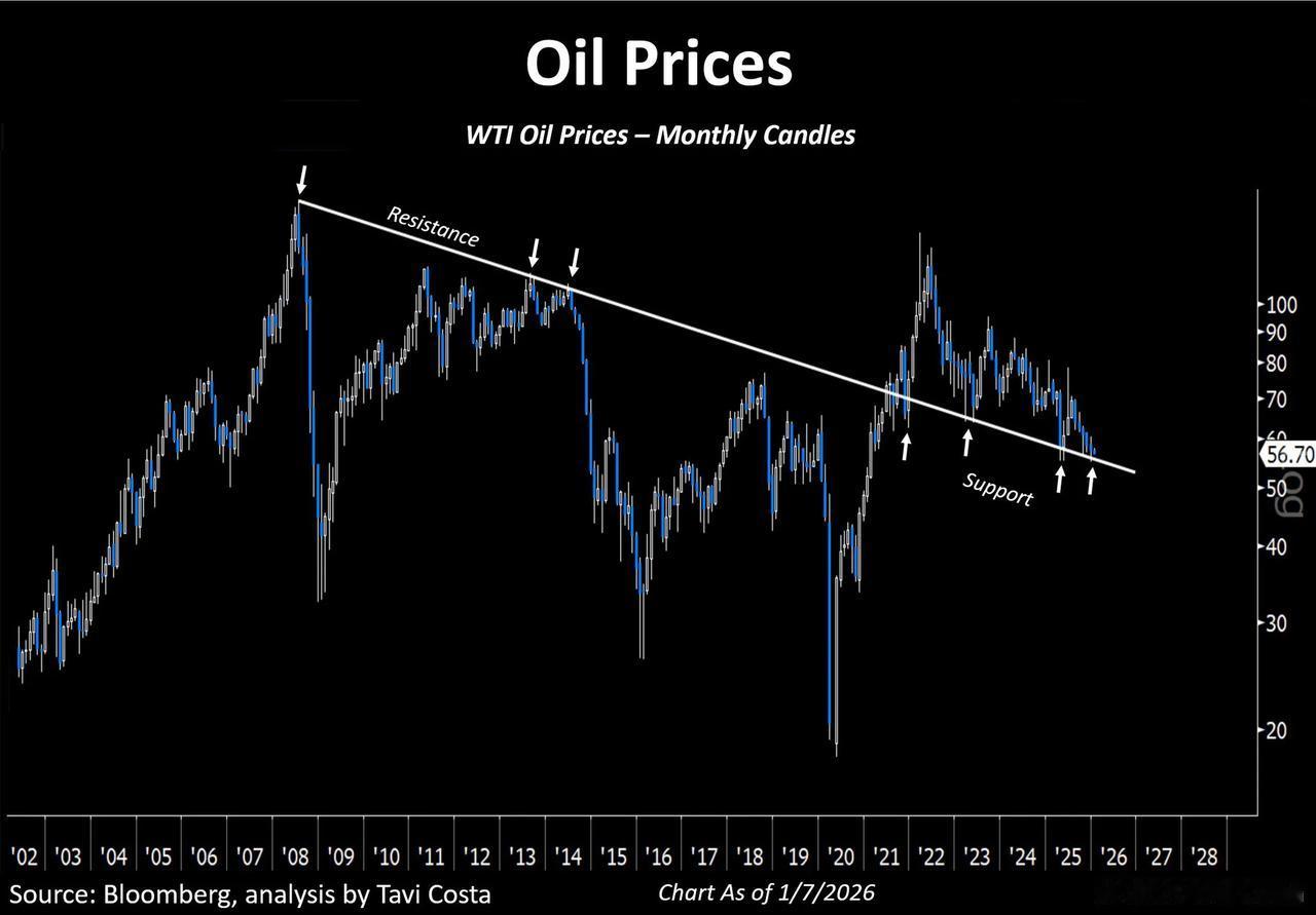 之前看多金属的分析师老师,如今开始看多原油了 “这可能会是能源大宗商品重新抬头的一年,尤其是原油。”那位几年前率先看多金属、后来被市场验证过的分析师最近这样说。 他强调自己并非短线交易者,但当前油价所处的位置“很难忽视”——原油正运行在一段关键的技术支撑之上,而这一区域在不久之前还曾是市场反复受阻的主要阻力。“同样的价位,先是压力,后来变成支撑,这种结构变化本身就值得重视。” 谈到见底,他的说法更偏“过程论”:“底部从来不是一天形成的。市场几乎总是在情绪最糟糕的时候孕育底部。”他认为,就目前的氛围来看,“我们大概率已经处在那种深度负面情绪之中”。 “从峰值算起,原油已经回撤接近 60%。”他直言,在他看来,这类位置往往正是资金开始分批累积仓位的地方,“聪明钱通常不会等到所有人都转乐观才行动。” 他还补了一句让人熟悉的对照:“这让我想起几年前的金属市场——当时几乎没人关心,讨论度很低,但机会往往就在这种时候慢慢出现。” 最后,他给了一个更“商品视角”的提醒:“在商品牛市里,领涨会轮动。资金经常从一个板块流向下一个板块,因为新的机会会不断出现。”