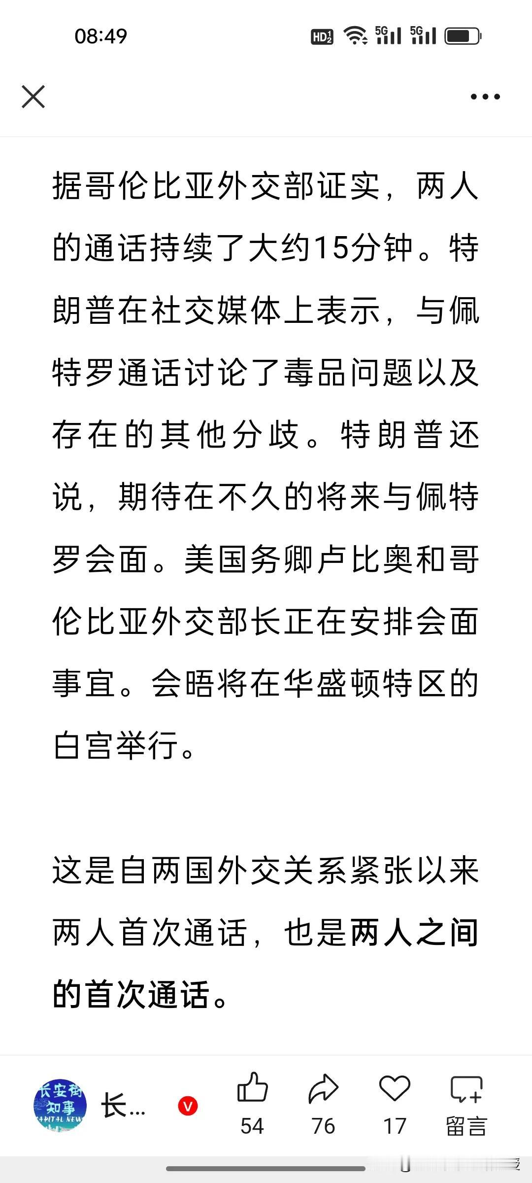 世界变化的太快!哥伦比亚总统佩特罗竟然跟特朗普通电话15分钟,双方还要会面了!马杜罗真的成了“枪打出头鸟”。 之前特朗普对哥伦比亚说了一句“小心点”以及面对记者提问是否会对哥伦比亚动武回复“听起来不错”,让哥伦比亚启动一级战备,下令军方清除效忠外国的指挥官,加强安全戒备,佩特罗还公开喊话特朗普“想让我穿橙色囚服?放马过来!”,强调哥伦比亚人民会走上街头捍卫国家与民主,不会屈服于美国暴政。 可没想到这么快迎来了180度的大反转,看来“解铃还须系铃人”。特朗普说期待不久能和佩特罗会面。两国目前正在安排会面事宜。 看来目前哥伦比亚也是暂时安全的,特朗普不会短期之内再袭击他国,昨天对于特朗普说的“绝对需要得到格陵兰岛”,鲁比奥也改口了,称是要“购买”格陵兰岛。 特朗普为什么不继续用武力突破?目前特朗普的“唐罗主义”,对拉美政策就是“软硬两手”,动武太费钱,更费脑子,且目前来看,“交易式施压”比武力更易获实利,既符合其“谋利优先”的算盘,也能规避战略反噬的风险。