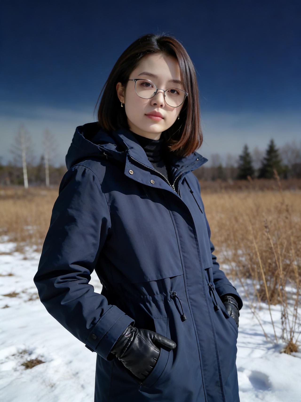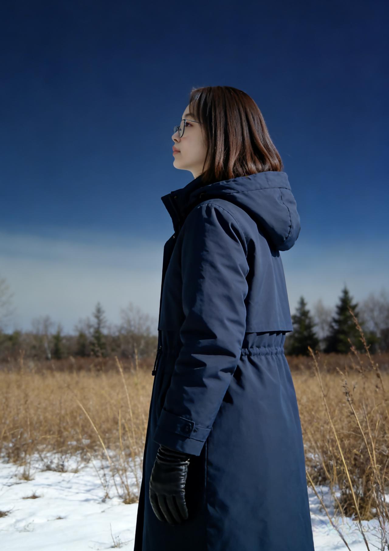 短发轻扬映雪光,青衫一袭立寒荒。 晶框望断天涯路,风梳荒原草木香。