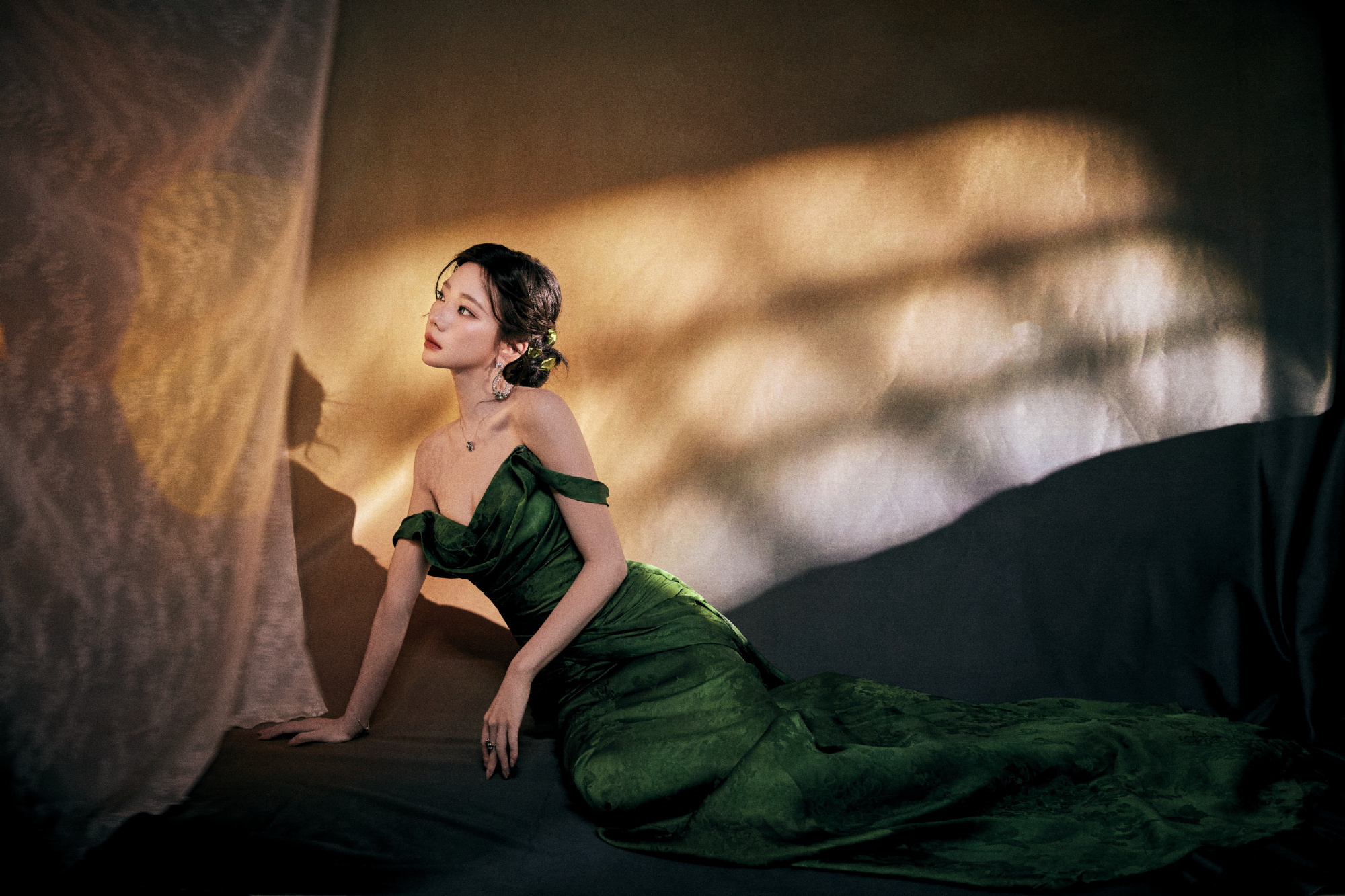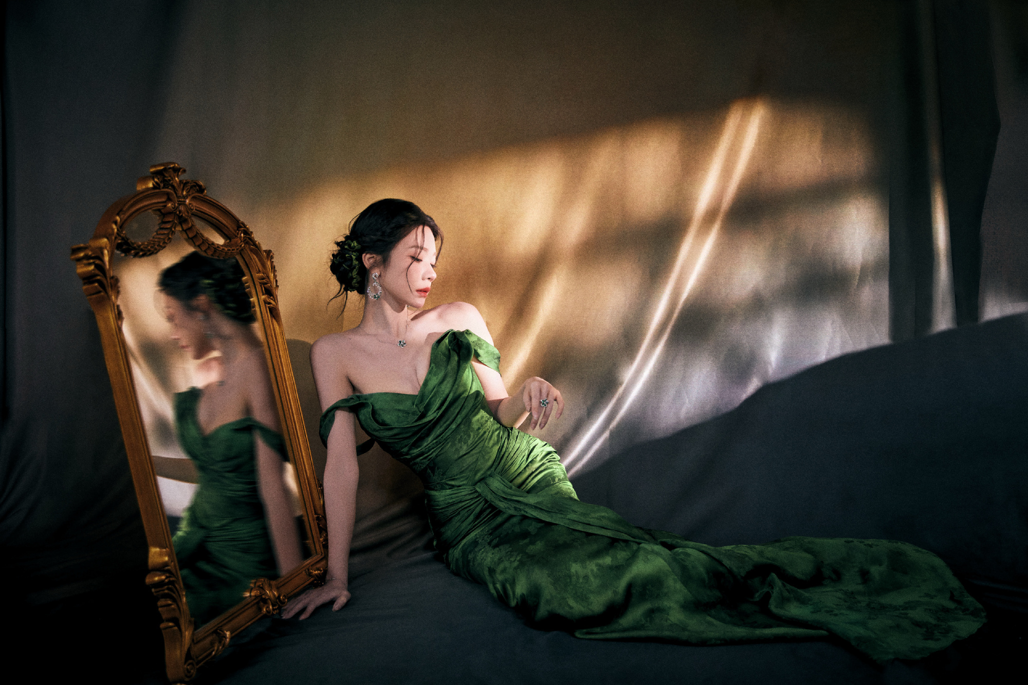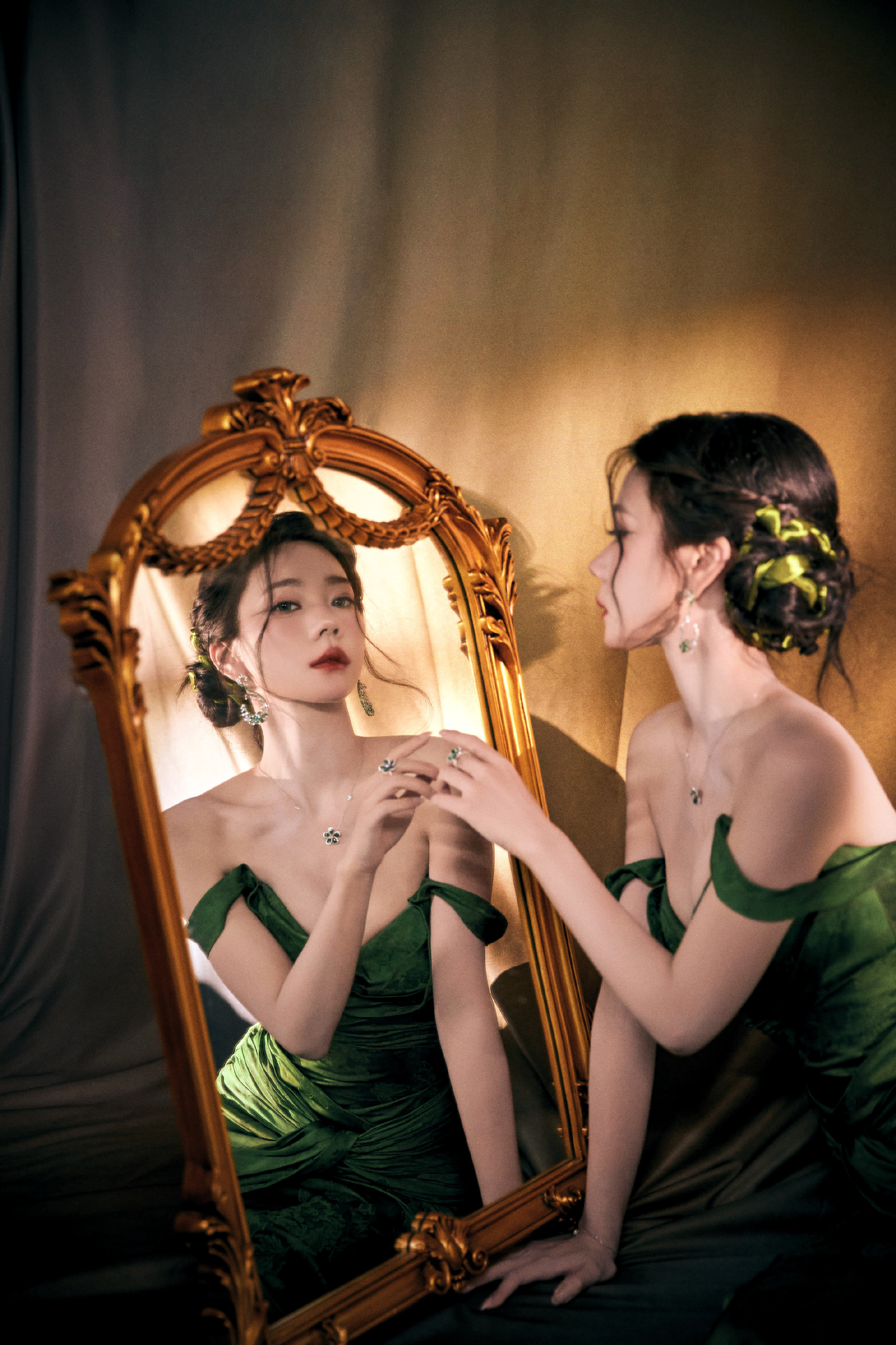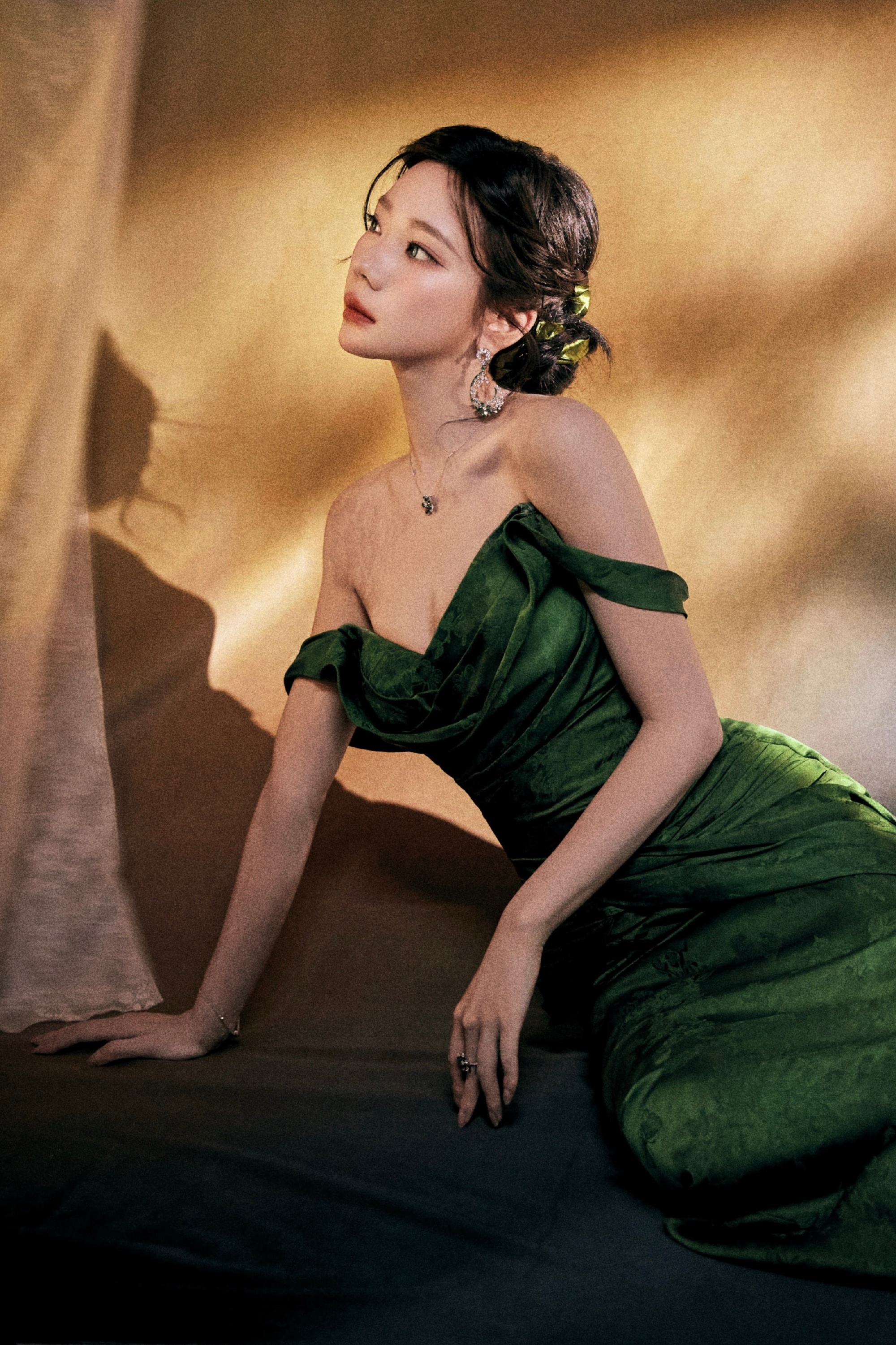 张紫宁给红毯上难度了,这套抹胸绿裙足够优雅。张紫宁