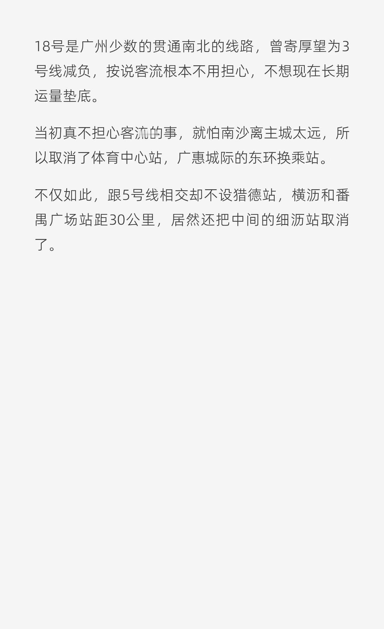 南沙不缺18号线,缺的是15号大环线。只要15号大环线通了,南沙内循环畅顺了,18号线自然就人满为患了。