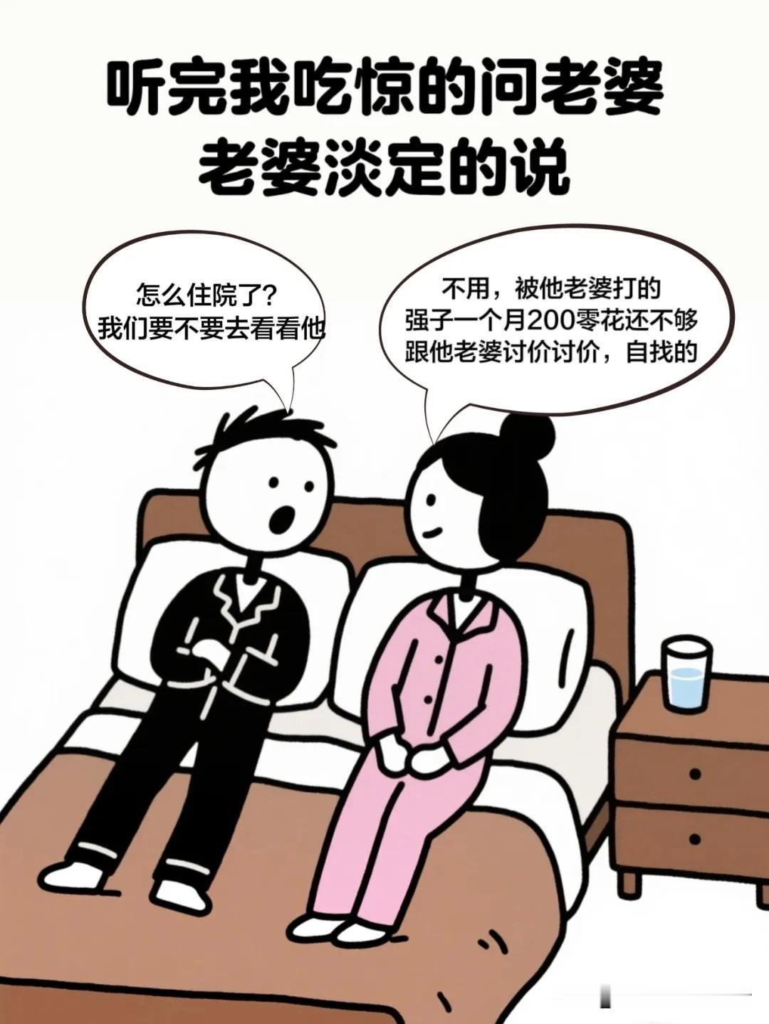 搞笑漫画:我问老婆怎么不跟强子老婆逛街了,老婆说强子要零花钱被他老婆打了,然后问我觉得一个月多少合适,我说:“男人就不该有钱包”搞笑漫画