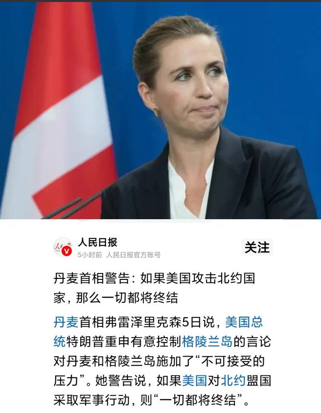 乍一想,还以为丹麦有核弹,深思才发现,欧洲一旦失去格陵兰岛,北欧就有可能被吞并。真是讽刺,天天嚷嚷着俄罗斯威胁,结果要吞并领土的是自己北约盟主大哥! 好搞笑,本来丹麦及北约齐心协力对付大俄,到头来吞并自己领土的却是带头大哥!这下欧洲政客们知道“大哥”的厉害了吧。 无可奈何花落去,似曾相识燕归来。最终格陵兰岛会不可阻止的被美国抢走,失落的丹麦自辩是成功阻止了中俄对格陵兰岛的侵蚀,奉献给美国已经是维护西方利益做出的最大贡献。 这才是世界的常态,这些小国家是好日子过久了,总觉得只要把中俄当成敌人,美国就来保护你,这下傻眼了吧美国人胃口很大的,下一道菜又是谁?