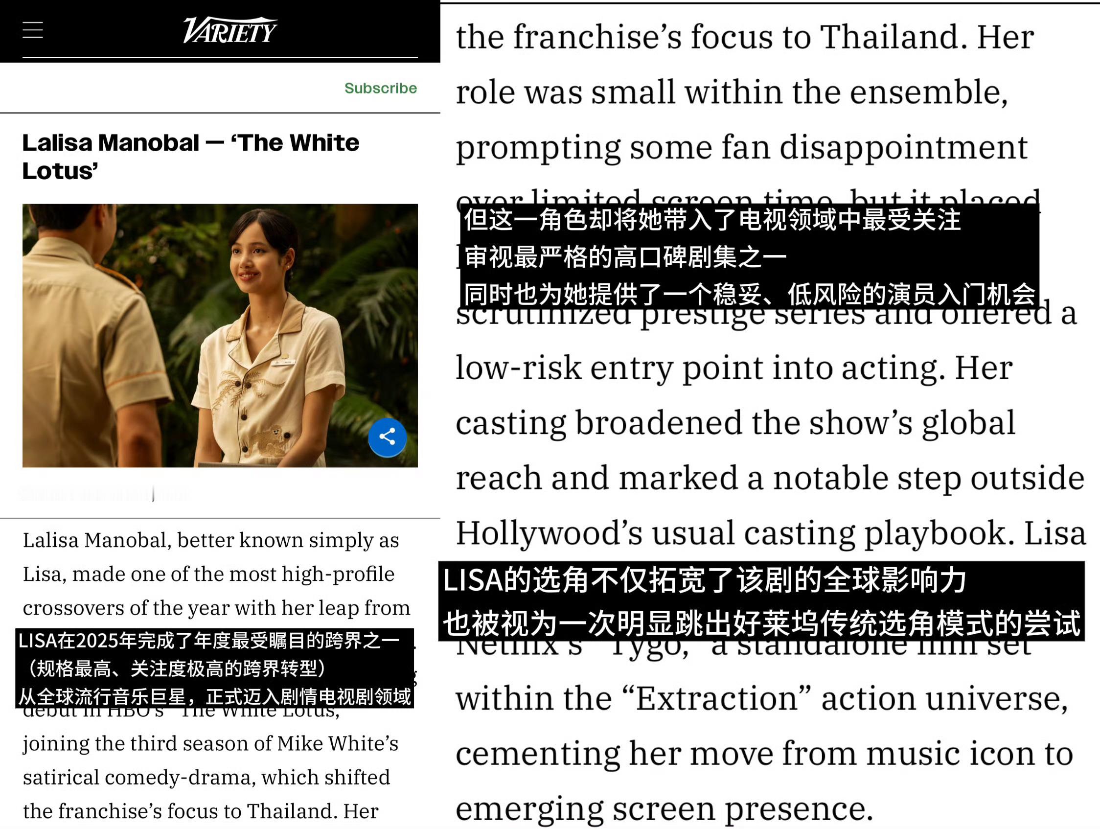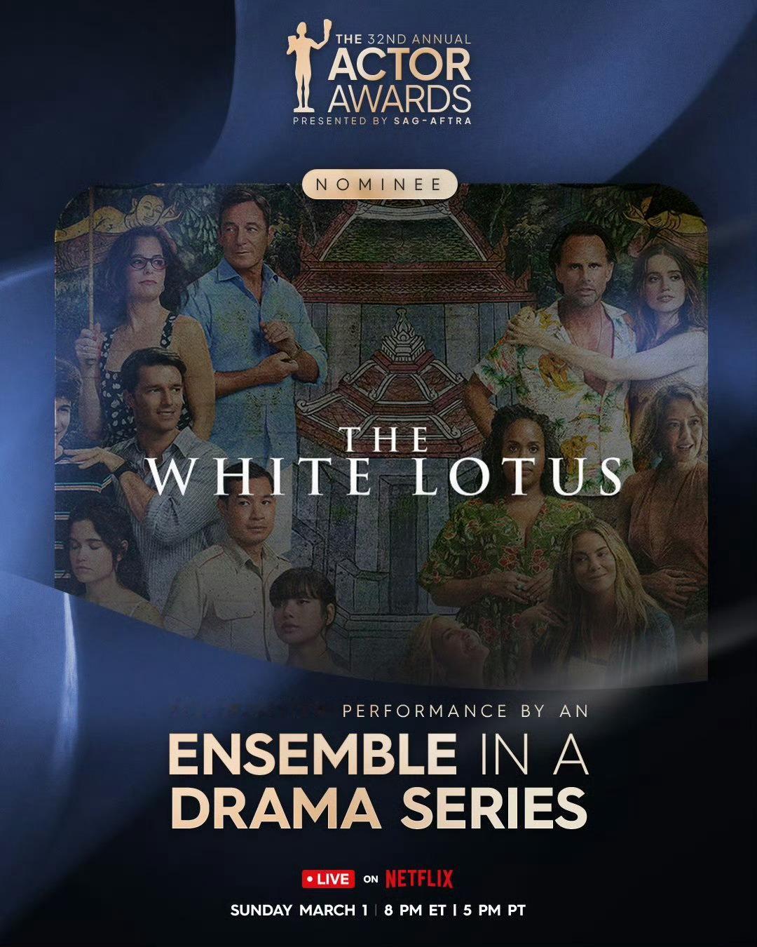 Lisa白莲花度假村获提名 Lisa参演的《白莲花度假村》第三季获得第32届The Actor Awards美国演员奖(原SAG Awards美国演员工会奖)“剧情类剧集最佳群戏奖”提名,恭喜!