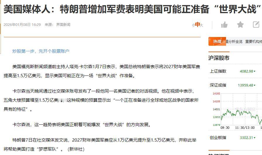 军工概念股行情今天太火爆了!20cm大长腿涨停的军工股多达5只。涨幅10%以上的军工概念股多达11只,简直亮瞎了我的双眼。 委内瑞拉总统马杜罗被美国三角洲特种兵部队点穴式抓获、特朗普宣布五角大楼2027年军费预算开支高达1.5万亿美元两大事件直接引爆了军工股行情。 从长期逻辑看,军工股行情似乎也有支撑。十五五规划引领军工股业绩增长和外贸份额增长,都对军工股构成利好。 当然,军工股经过如此暴涨,短期似乎并不是一个好的介入点。