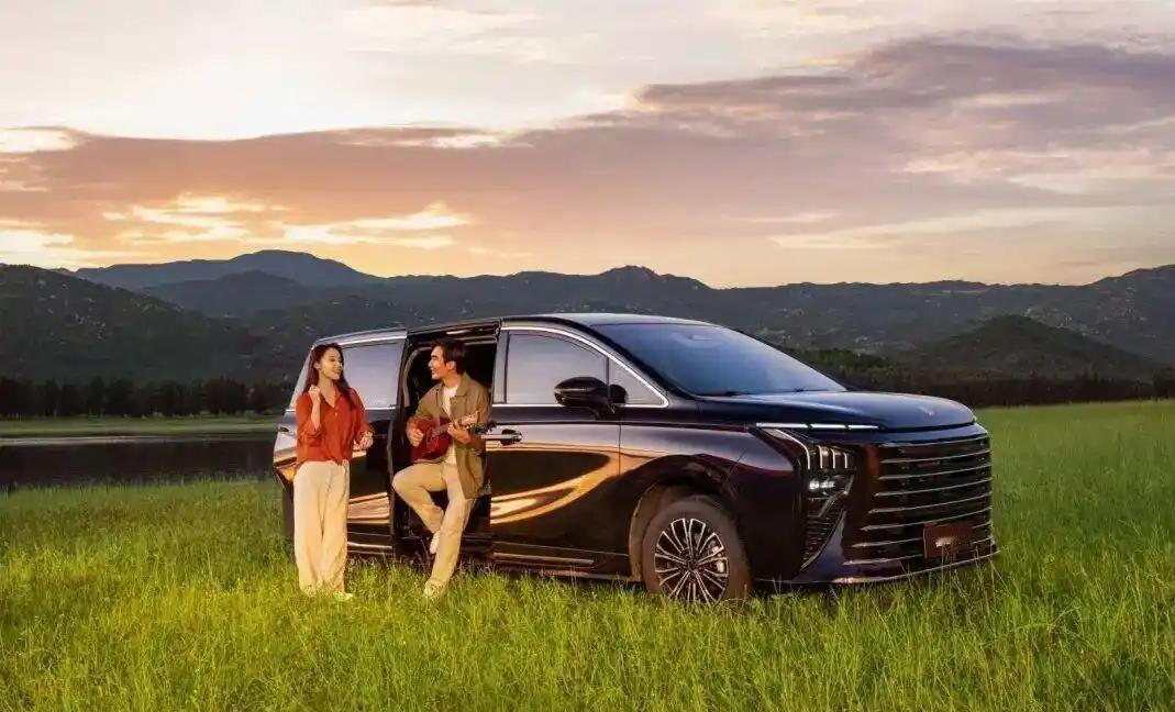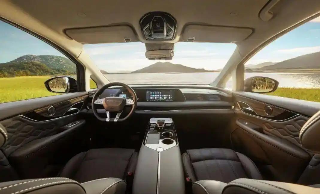 第一眼看去,它没有那种张牙舞爪的未来感,反而把东方韵味玩得很透。那个被称为“中国结”的前脸格栅,线条交错,精致得像件工艺品。 流苏式的LED大灯亮起时,有种特别的仪式感。5米23的车长,近2米的宽度,让它往那一停,气场自然就出来了。 但MPV的灵魂,从来不在车外。 拉开车门,那种被包裹的“家”的感觉才扑面而来。环抱式的座舱设计,配上他们自己说的“山云涧”风格,你能看到中控台上如水波荡漾的纹理,副驾驶前那块区域设计得像一叶扁舟。晚上,64色的氛围灯一开,整个车厢暖融融的,长途跋涉的疲惫感瞬间被卸下一半。