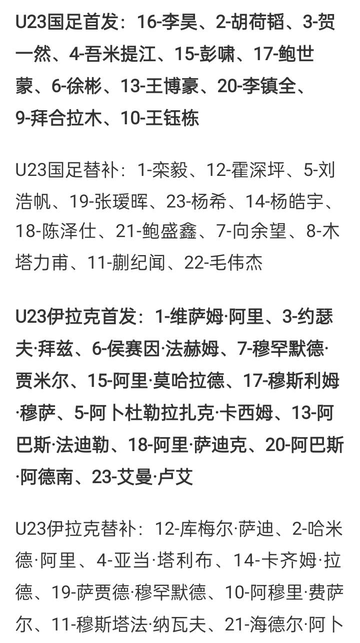 U23国足vs伊拉克首发:王钰栋领衔,拜合拉木、王博豪、胡荷韬先发,蒯纪闻替补 01月08日 22:00,U23亚洲杯小组赛首轮,U23国足vs伊拉克,赛前两队公布首发出炉!国足方面,王钰栋、拜合拉木、王博豪、胡荷韬先发,徐彬担任队长,蒯纪闻替补