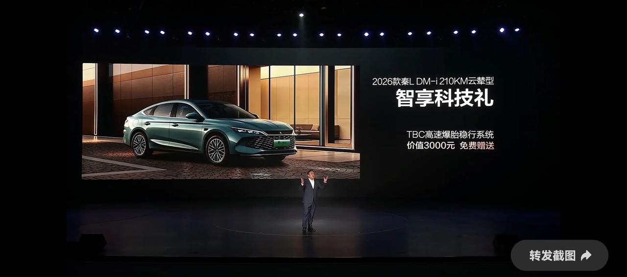 炸!比亚迪开年出牌,四个2,三个C。秦家族大升级。比亚迪:买插混认准4个2 2026款秦L DM-i 售价9.28-12.28万元。这次除了加推210公里续航的大电池版本,配置上增加,比如前排座椅加热通风,新增车色等。另外云辇C,天神之眼C(高快领航),TBC爆胎稳行系统也都上车。给打算考虑210续航的朋友们一些购买建议,预算够就上12.28万的版型,比卓越版增加了15.6英寸屏,HUD等,关键带云辇C了,驾驶质感会上个台阶。 2026款秦PLUS DM-i售价7.98-9.98万元。新增车色,配置升级,一句话:纯电210公里的插混车,价格打到了8万多。够狠,够卷。 2025年,秦Plus和秦L卖了66万辆,秦Plus占比更多。截至目前,秦家族共有270万用户,中国有秦,这就是我们身边那台四季三餐过日子的百姓车。 26款秦你觉得怎么样?哪款你更关注?给评论区的兄弟们讲讲。 预告:本月10号,26款的宋pro DM-i长续航版本也会上市。【来自懂车帝车友圈】
