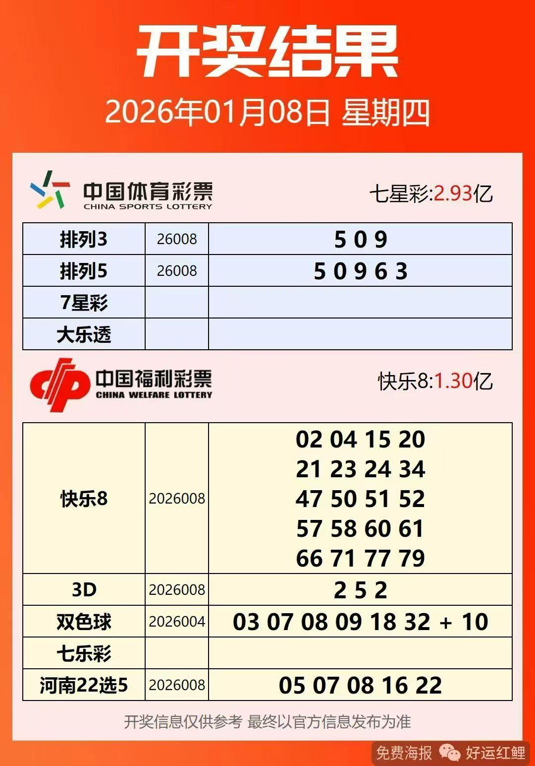 1月8号星期四,双色球开奖号码揭晓:03、07、08、09、18、32—10。本期双色球开奖号码前区红球开出了一枚重号09号,开出了一组三连号07、08、09号,开出了一组十进制同尾号08、18号,后区蓝球开出了仅间隔几期的热号10号。 本期双色球开奖号码前区红球大中小区号码都有分布比较均匀,小号居多。一等奖开出4注,单注奖金870万元。一等奖中奖分布:湖南新疆各中得一注,浙江中得两注。