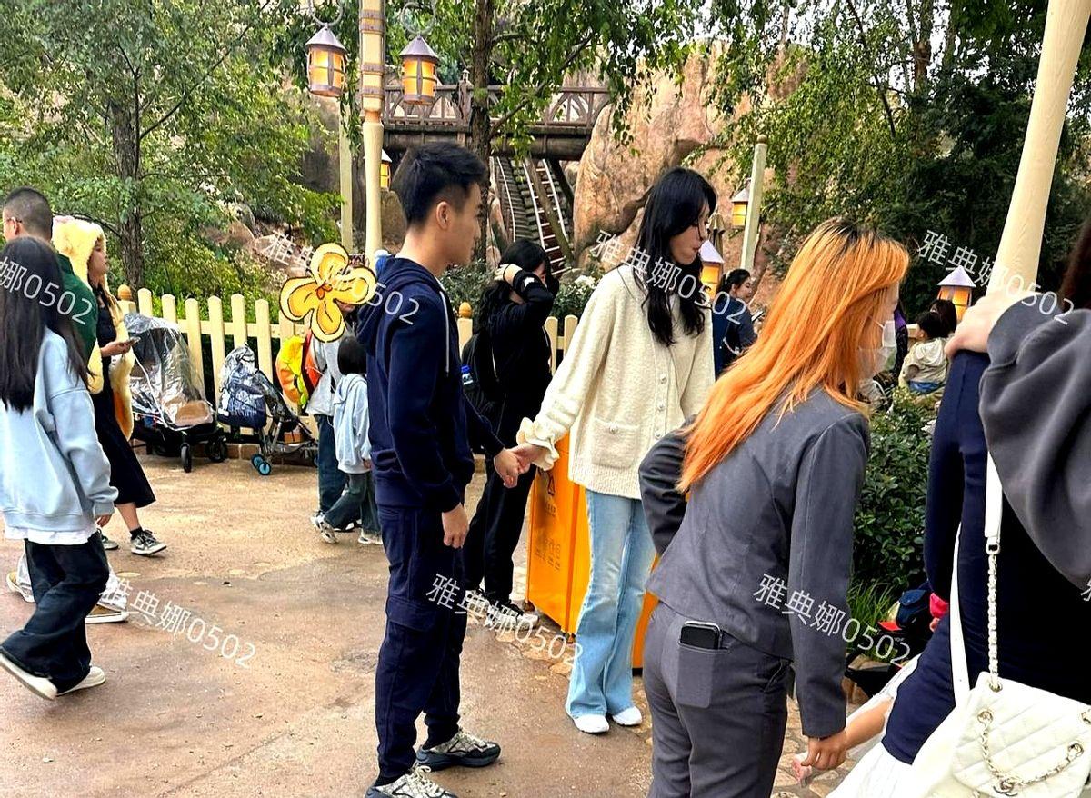 奚梦瑶比何猷君高了半个头,这画面感真的绝了! 最近又有网友在迪士尼逮到他俩,一家四口手牵手,画面还挺温馨的。 但焦点全在两口子身上。 奚梦瑶那个白啊,在人群里简直是自带反光板,衬得旁边的老公肤色深了好几个度。 她官方身高178厘米,就那么随意一站,超模的架子就出来了。何猷君在她身边,确实显得……嗯,很娇小。 据说女儿小小年纪腿就很长,这基因真是强大。 只能说,超模的身板,走哪儿都是最抢镜的。