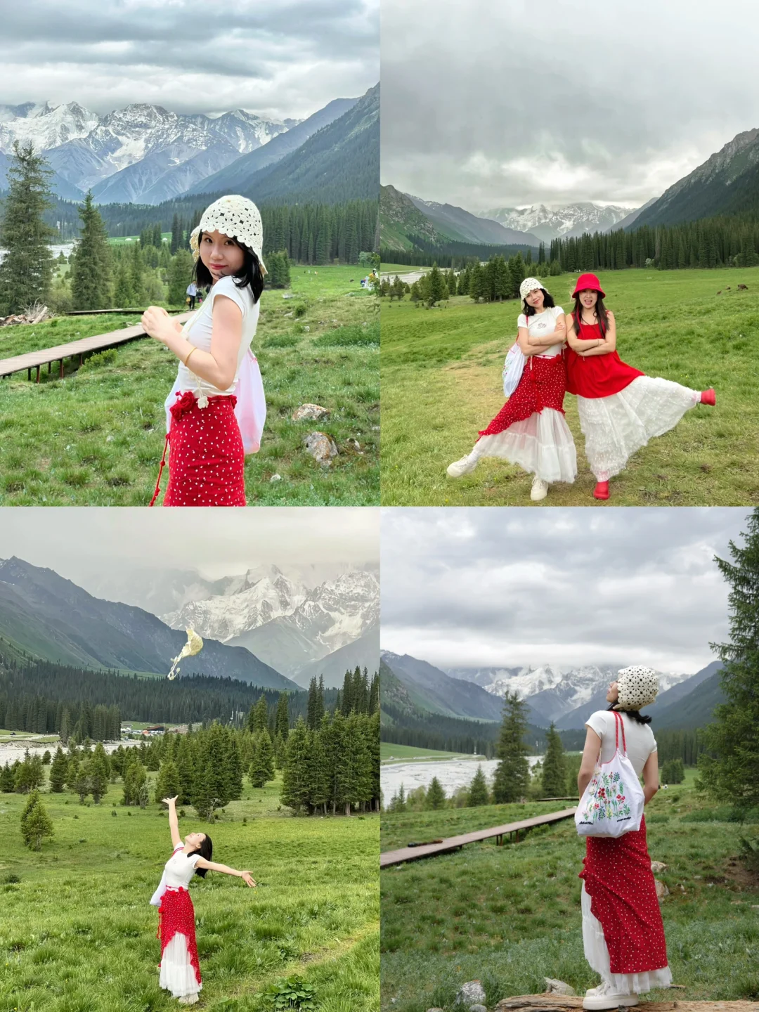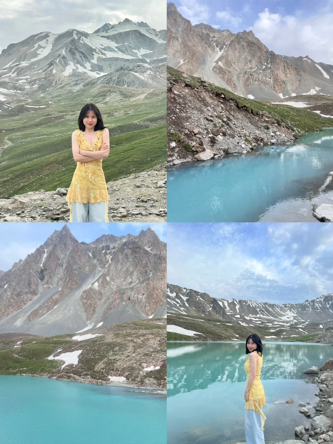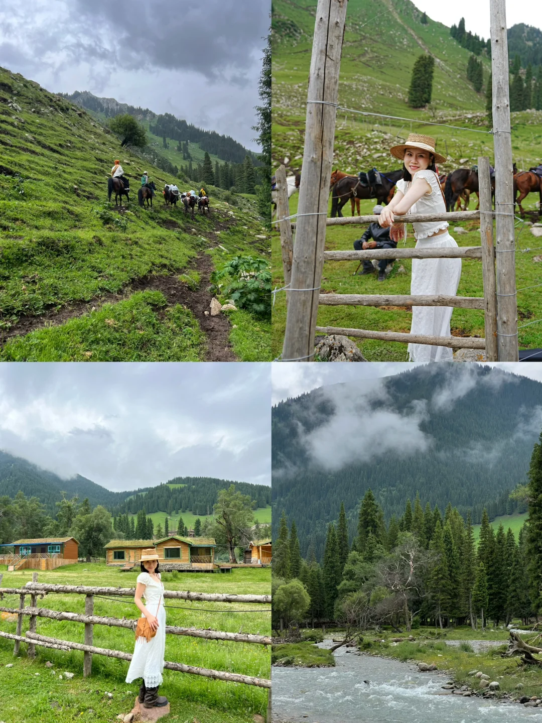 Day5:开车去那拉提空中草原,需要坐缆车上去哈,我们去滑了草,超级好玩,然后朋友骑马也很不错,但是去了网红桥真的是很没有必要!往上面走也有桥,但是我觉得这一段风景一般[捂脸R],可能我们下雨了,然后开车独库公路,经历了一年四季!拍到了超级美的蓝心湖!!姐妹们一定要去,超级美!(图10~12)