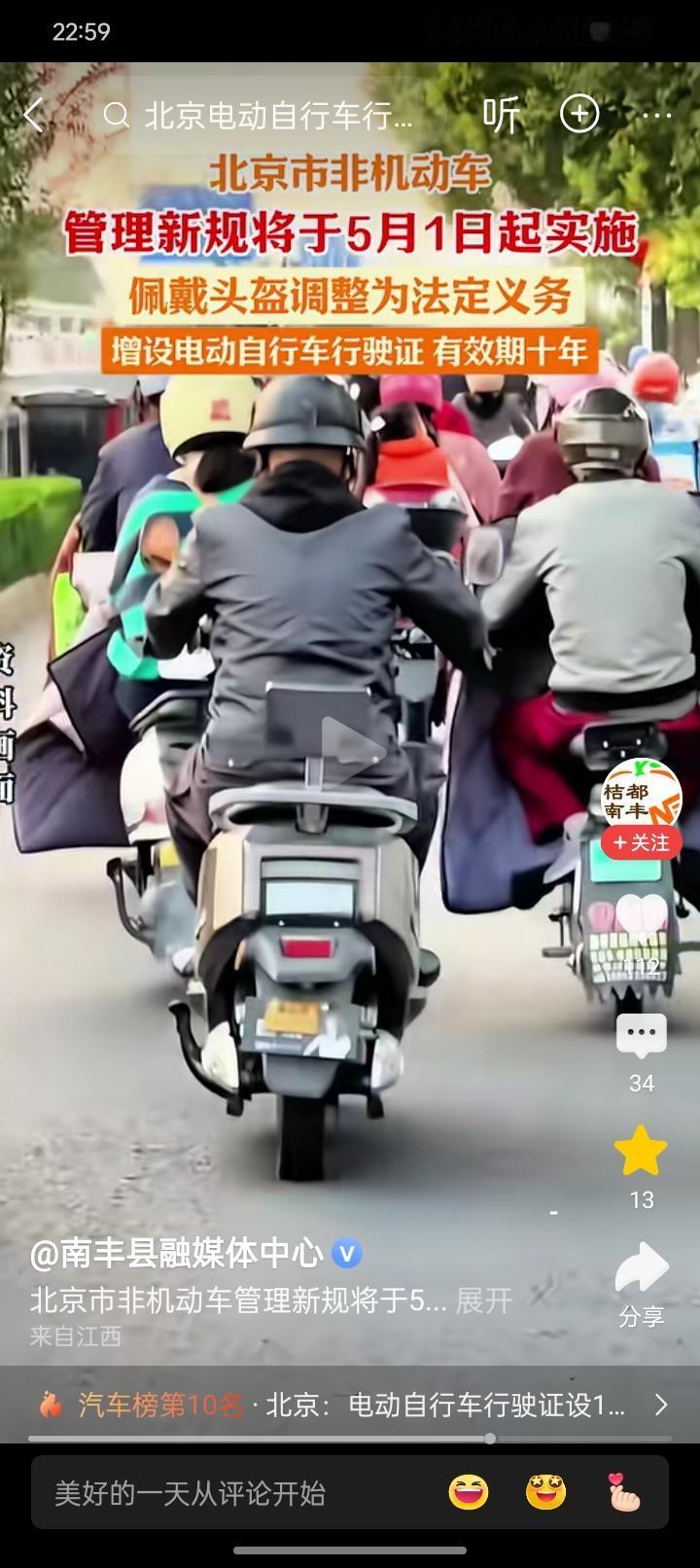 北京市针对电动自行车的管理,或许是正在为全国其他地方打样! 新规从2026年5月1号开始,实施,除了给每一辆合规的电动自行车规定行驶证10年有效期以外,还有规定必须要骑车戴头盔,否则违规。 当然还有一点非常不一样的事,此前新国标规定后座只能坐12周岁以下的孩子,现在改了,变成了16周岁,这意味着初中生也可以同样坐在后座了。这是一个非常人性化的改变。 也说明了没有什么事情是一成不变的,就像现在新国标规定必须是 25码,但大家都觉得应该再快一点比较符合使用的场景!新电动车新规