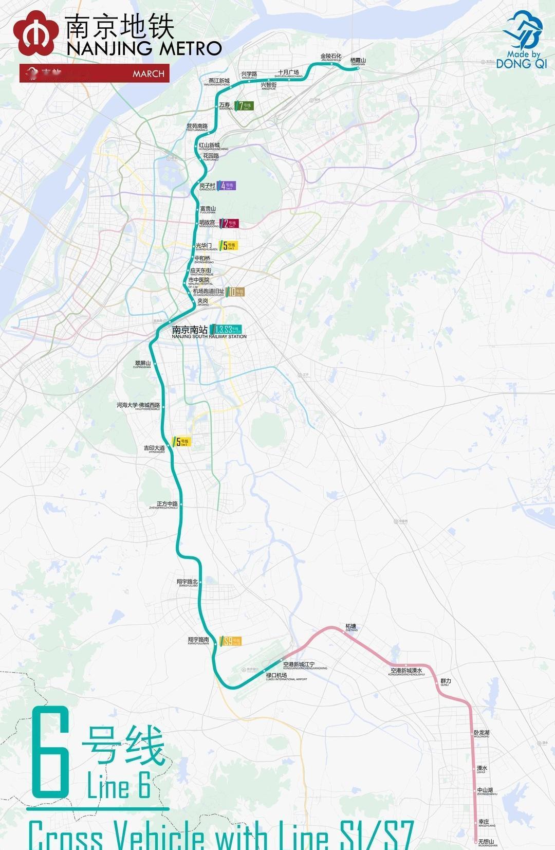 南京地铁6号线即将跑图 你需要知道这些 跑图安排(暂定,以实际为准): [一] 2026年1月18日–2月6日:21列车,交路为栖霞山站—夹岗站 ; [二]2026年3月1日–3月20日:42列车,大交路栖霞山站—空港新城江宁站,小交路万寿站—禄口机场站,三线贯通交路栖霞山站—无想山站; 目前,6号线正在试运行,预计3月底或4月初开通; 轨道交通 南京地铁 地铁 城市交通规划 以上配图均为本人绘制,严禁转载