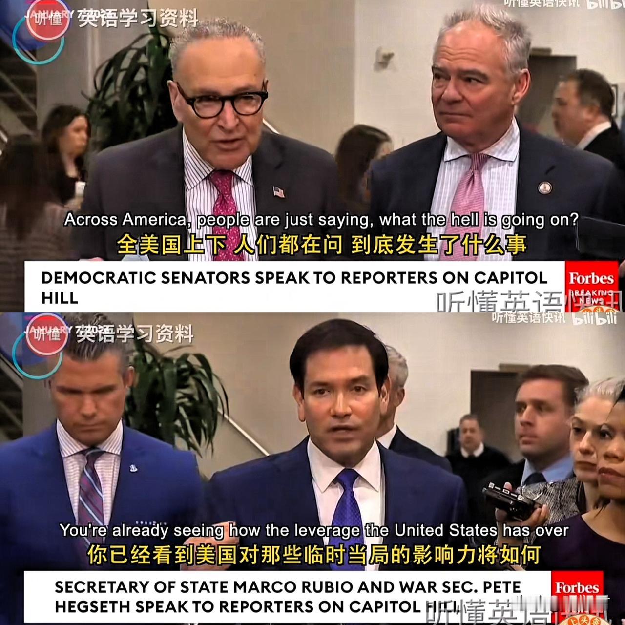 “我们需要听证会”,美国两党开会,两位议员在接受记者采访时提出的问题很尖锐,美国国防部长以及国务卿卢比奥,对此针锋相对作答。 议员:全美国上下都在问,到底发生了什么?行动需要多长时间?我们需要投入多少军力以及资金? 国防部长:问成本这个问题本身就很不真诚。 国务卿卢比奥:美国纳税人没有花一分钱。很多运营细节无法公开讨论。你已经看到了美国的影响力如何,事实上,这不是一次临时的应付。美国务卿鲁比奥