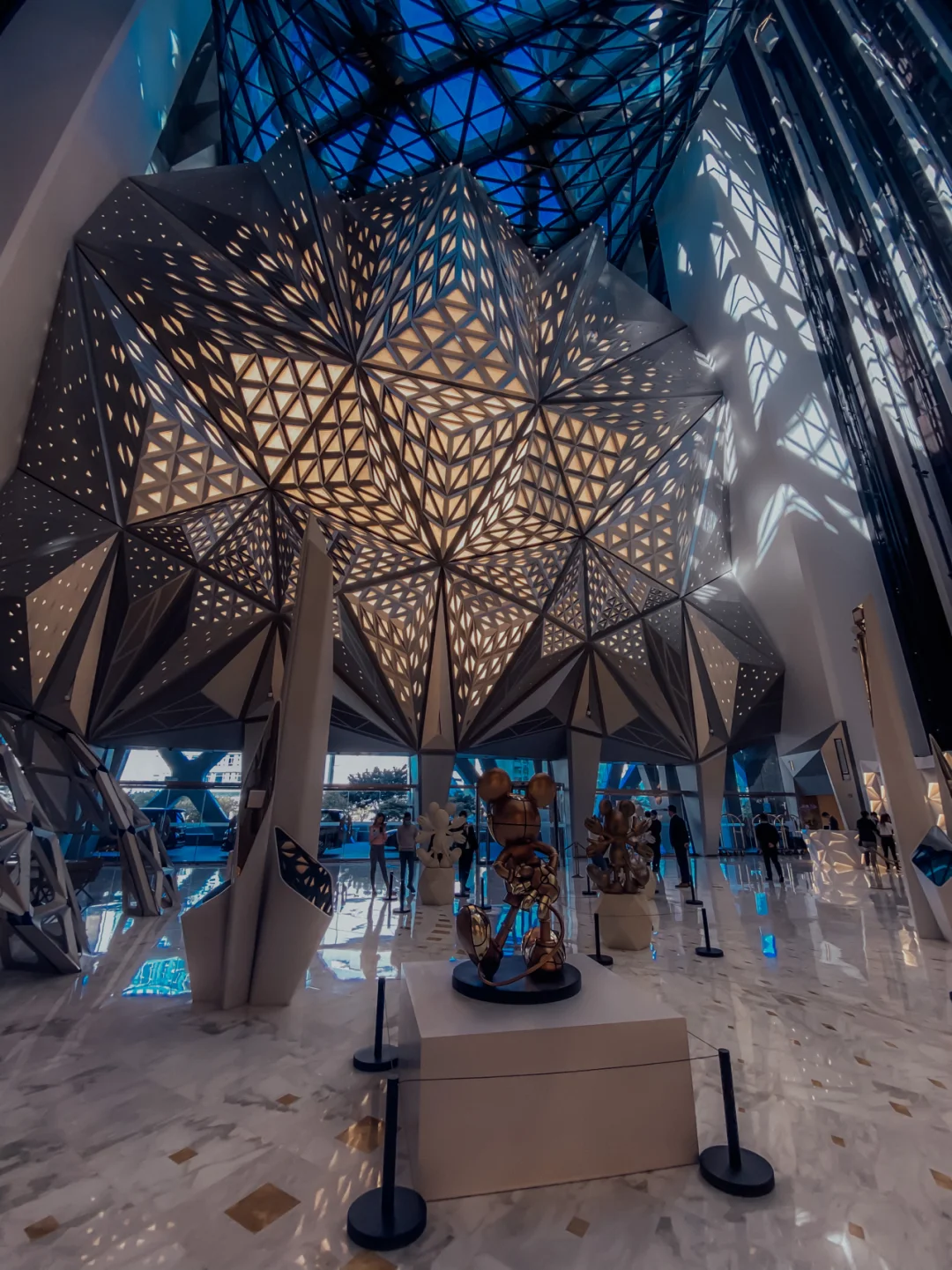 澳门首个POP INFINITY 展览 国际顶尖艺术家携手迪士尼顶流IP 果然让人大开眼界。 这次的展览位于摩珀斯酒店的一楼大堂 几何图案与POP INFINITY 展览相互映衬 相得益彰 本次展览从2月5日开始 一直持续到2月28日 🎉🎉展览是免费开放的🎉🎉 在欣赏艺术都同时 摩珀斯酒店的大堂也是很酷的拍照地点。 🌟🌟拍照机位分享🌟🌟 1⃣️大堂吧几何图案的墙面,可以拍出杂志封面的感觉。 2⃣️低角度拍摄人物和整个大堂几何图案。 3⃣️与米老鼠来个有趣的合照 4⃣️利用大堂柱子上的镜面拍摄建筑的几何图案 5⃣️可以从后面拍摄米老鼠的造型,感觉更可爱! 最近第二期的澳门酒店五折优惠券已经开始了 过年期间去澳门,入住酒店超级划算!
