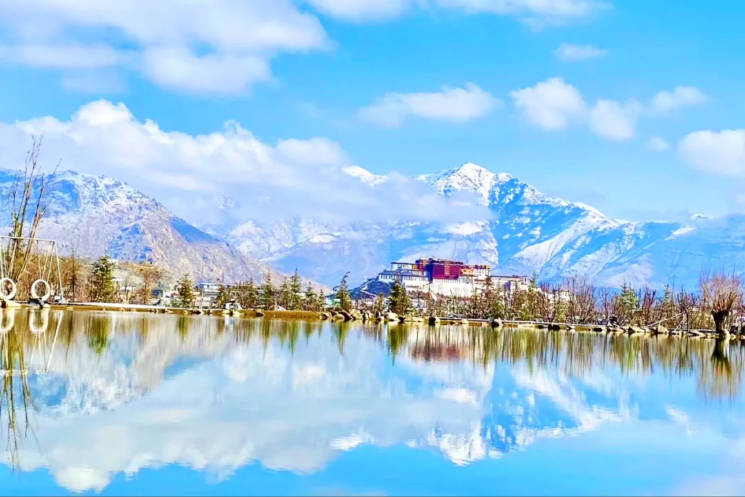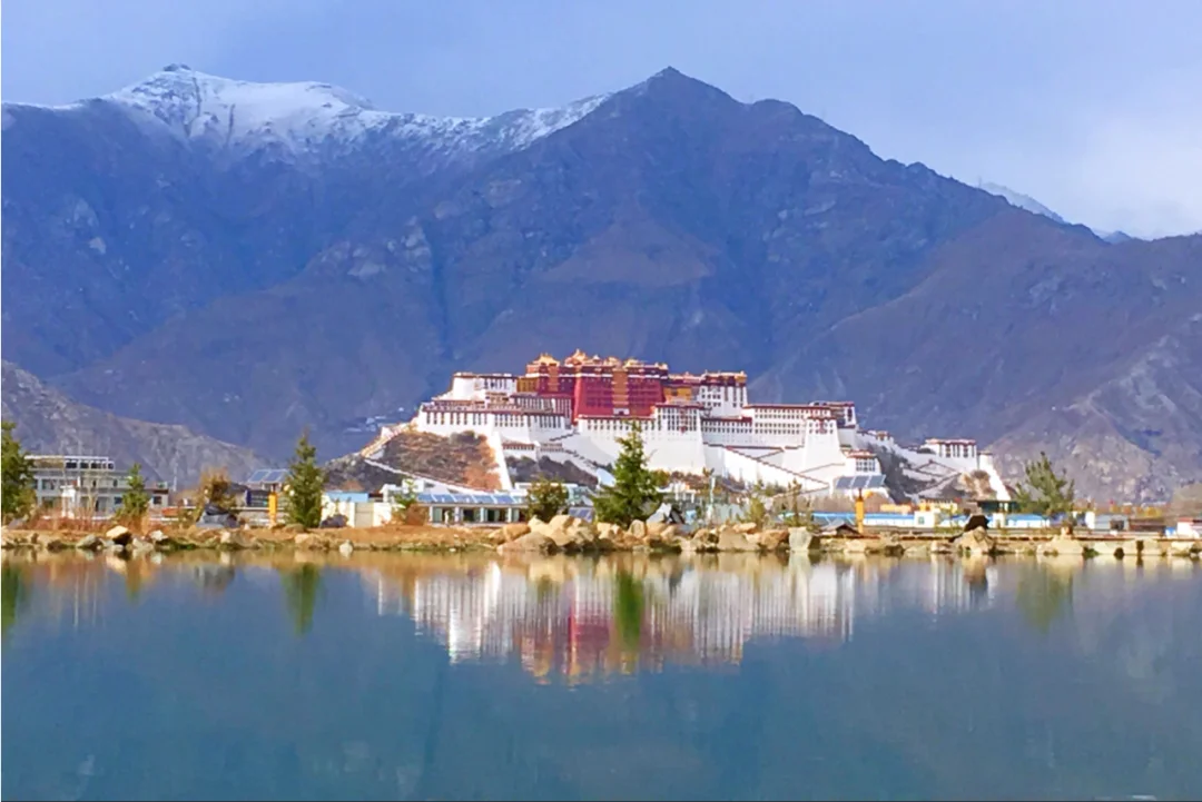 【南山公园】在【布达拉宫】的正南方,那里暂时没有公交车站,可以打辆车过去,或者骑自行车,一边欣赏拉萨拉萨河的美景,一路玩过去。南山公园是免费开放的,顺着阶梯而上,那里有个湖,湖水平静如画,布达拉宫倒影其中,非常漂亮。