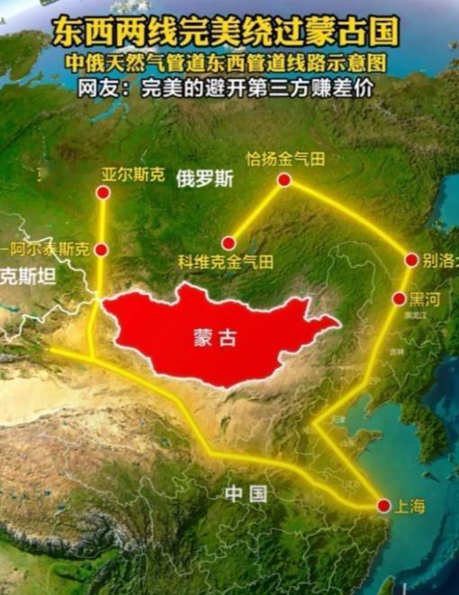 天然气管道绕过蒙古国真是一个明智的选择!虽然绕了个大弯,避开了蒙古国,乍一看好像多花了钱,路也更远了,但你细品,这步棋走得妙啊!为啥这么说?看看现在的国际形势,你就明白了。咱不能光盯着计算机上的那几个数字算,得算大账,算国家的安全账,要是真为了省那点过路费和建设成本,把国家的能源命脉交到别人手里,那才是真正的丢了西瓜捡芝麻。 先说中俄东线天然气管道,这条线从俄罗斯远东气田直接进中国东北,全长几千公里,设计年输气380亿立方米,已经全线贯通,运行几年下来稳定可靠。建设时没走第三方国家,全是两国直接对接,供应从没出过大问题。这条线证明了,双边合作最靠谱,掌控权在自己手里,用气地区随时有保障。 西线项目谈了多年,早先有方案想经蒙古国,路径短点,蒙古境内几百公里草原好施工。但蒙古这些年推行第三邻国政策,积极拉近与美国、日本、韩国关系,美国给援助,签航空协议,还在稀土矿产上合作优先西方企业。蒙古外交摇摆大,谈判时总想多要点过境费,条件苛刻,价格、融资老谈不拢。加上国际形势复杂,第三方国家立场容易变,一旦外部压力大,管道维护、收费标准甚至供应都可能出风险。欧洲那边管道事件就摆在那,陆上过境更易受政治影响。 中国天然气进口量大,依赖度高,必须多渠道备份,中亚管道、海上LNG、东线都运行好几年,互补性强。直接绕开不确定因素,额外成本算下来不算啥,长远看稳定供应值回票价。现有经验显示,双边管道运行平稳,带动沿线就业和基础设施,从没中断过。 现在西线备忘录签了,确认经蒙古国,年输500亿立方米,但价格、开工时间还在谈,建设得几年。蒙古能拿过境收入,本地也用上气,俄罗斯补欧洲市场缺口,中国多一条来源。整体上,中国进口多元化布局稳,管道气和LNG备份,不管形势咋变,国内供应不受大冲击。这步棋下得稳当,把风险控在前头,能源安全握在自己手里,比啥都强。
