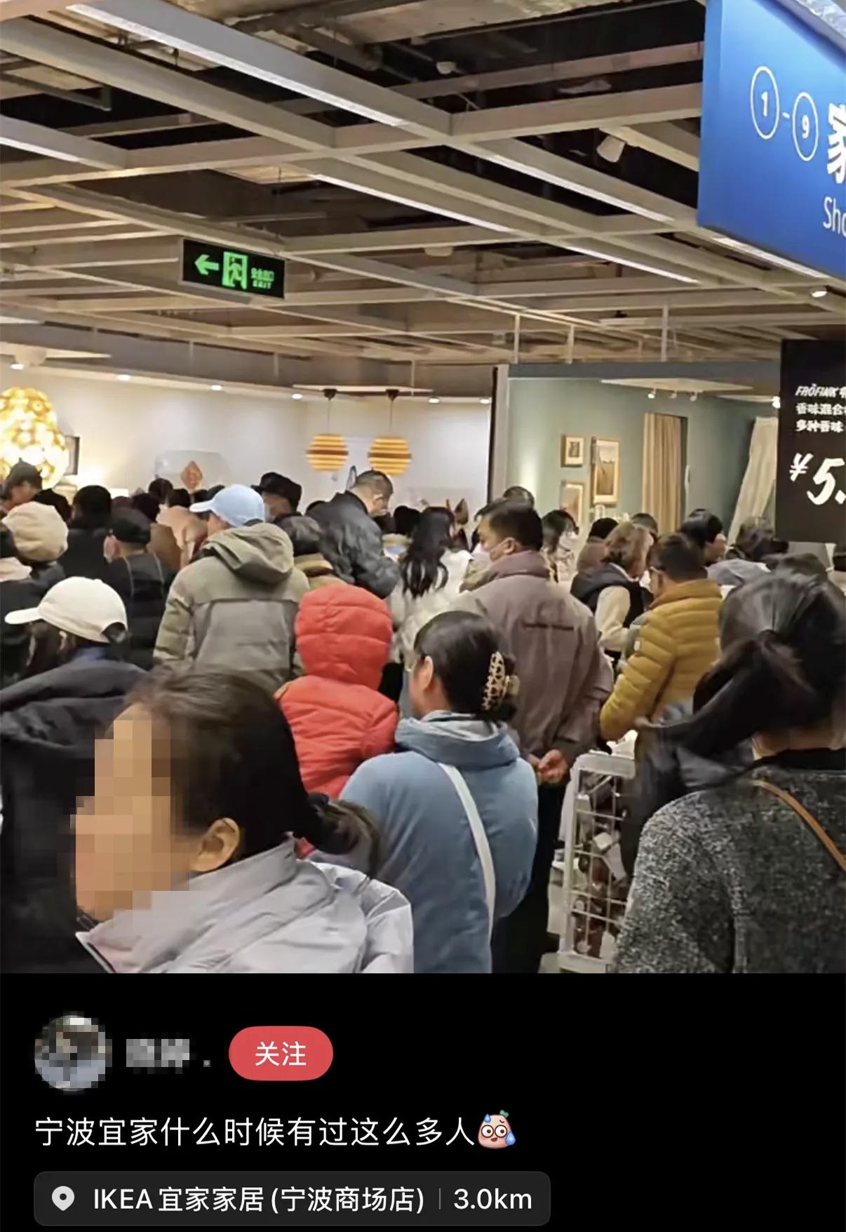 看来大家都是挺爱凑热闹的!即将于2月初,停止运营的宁波宜家商场,今天恢复营业。现场人山人海,进商场的路段,也是出现了堵车。 这种场景,这种客流量,在平常是不多见的。商场发出通告,快要停止运营了!于是今天就来了一大群顾客来凑热闹。 当然,今天来到宜家商场的,不少人应该是来“抢购”的。就是看看有没有打折商品之类的,看看有没有正好是家里用的上的。但不管怎么说,我想大家主要还是凑热闹为主,顺便买点折扣商品回去。 素材来源:宁波晚报