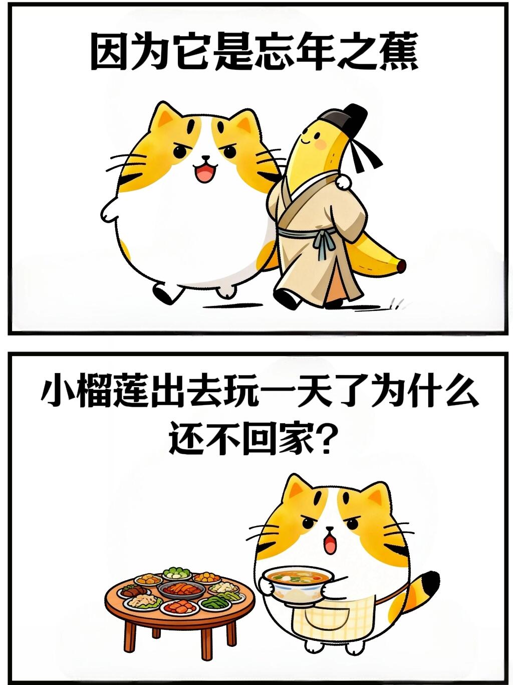 小榴莲出去玩一天了为什么还不回家? 因为它是忘年之蕉