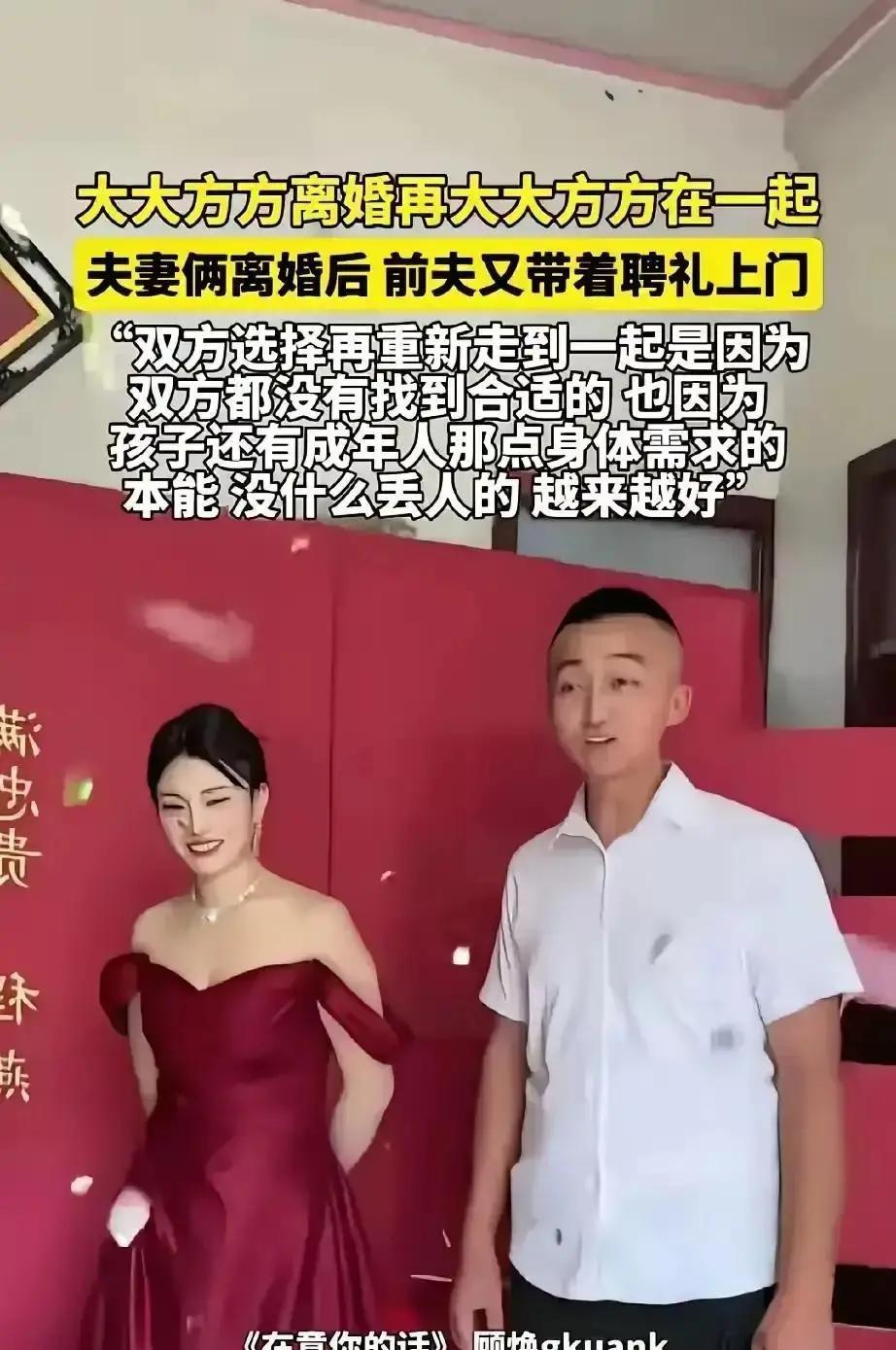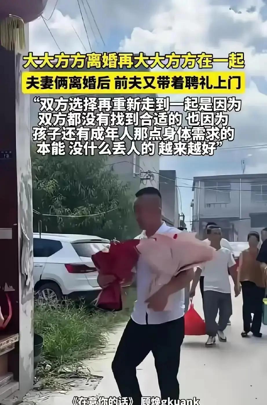离婚不是失败,复婚也不是将就——两个被邻居拍下的视频在抖音播放了三百万次的小两口,带给我们意想不到的启发! 小李和小王是在2023年因为吵架离婚的,当时两人因为孩子还小,想着还是分开住吧,各自接送孩子上学,吃饭的时候也会一起商量好,不会让孩子知道爸妈已经分开。 俩人也会轮流值班接送孩子,家里的账单也会分摊。 吵架离婚的时候两人肯定是闹得不愉快的,但谁也不知道分开住之后,两人其实都很快适应了离婚后的生活。 小王不用再忍受小李的唠叨,小李也觉得自己终于不用端着媳妇的架子了,想干嘛就干嘛,两人都觉得分开真的很好。 只是孩子真的很黏爸妈,这让两人都有些难受。 接送孩子的过程中,两人慢慢发现彼此好像都离不开对方。直到今年3月的一天,小李突然给小王跪下了,她单膝下跪,眼泪汪汪地看着小王说:“我错了,我们不应该离婚,求你复合。”这话把小王都看懵了,后来小王也是感动地哭了,两人互相扶持着重新走到了一起。 这一幕被邻居看到了,还拍下来了。两人没想到,这视频能在抖音播放三百万次!后来两人又发了个长视频解释,说离婚不是失败,复婚也不是将就,而是两人都更清楚自己的需求和想要的生活方式。 截止到现在,两人的抖音账号也涨到了45万粉丝,并且还会经常更新日常vlog。两人说比起面子来说,责任更重要,在这段关系里,他们都愿意负起责任来。 各位看官朋友们,你们赞同这两个小两口的做法吗?其实婚姻没有标准答案,适合自己的才是最好的。 麻烦看官老爷们右上角点击一下“关注”,既方便您进行讨论和分享,又能给您带来不一样的参与感,感谢您的支持!