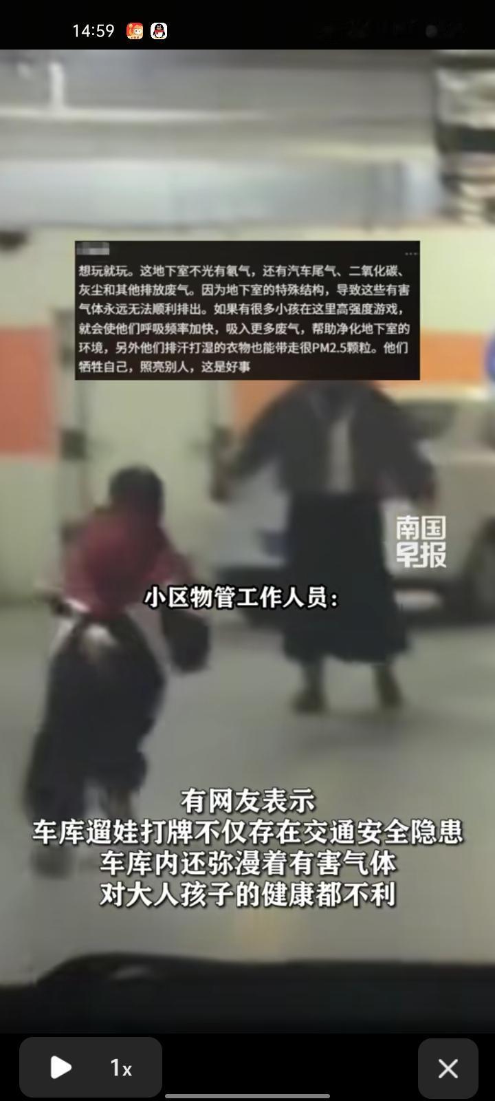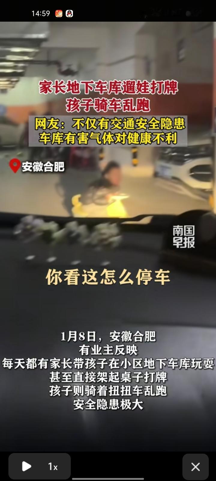 1月8日,安徽合肥。有业主反映称,每天都有家长带孩子在小区地下车库玩耍,甚至直接架起桌子打牌,孩子骑着扭扭车乱跑,安全隐患极大。 小区物管回应称,曾多次到现场劝阻,但是没有用,因为冬天冷底下暖和,派出所已介入处理