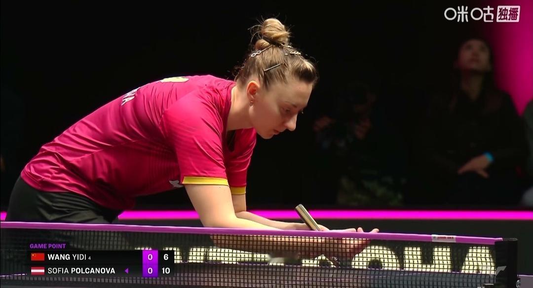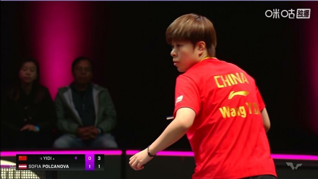 大迪超级逆转,率先晋级冠军赛八强! 多哈冠军赛第2轮,1/8决赛。 王艺迪让1追3、3:1(7-11;11-7;11-6;12-10)超级逆转、大胜、身高臂长、奥地利波尔卡诺娃。 热烈祝贺王艺迪率先挺八强!