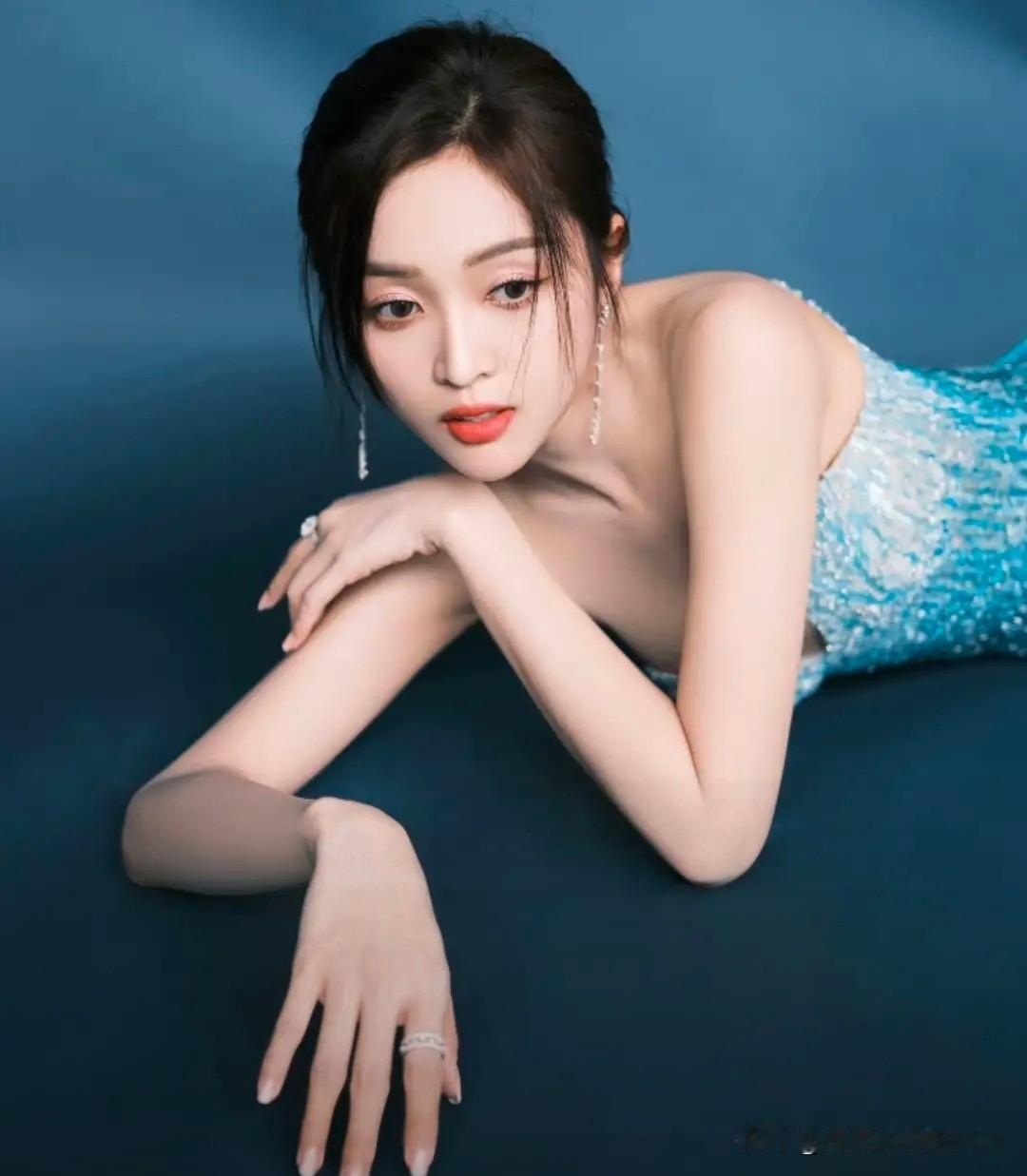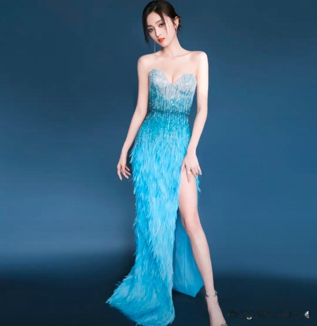 吴宣仪这身蓝色开叉裙绝了!又仙又媚,真是从头美到脚![爱慕] 裙摆开叉设计显得