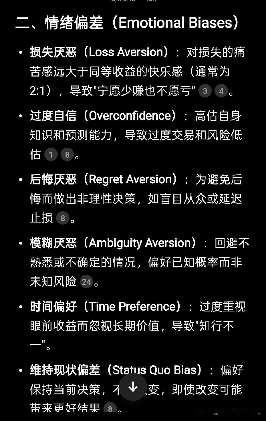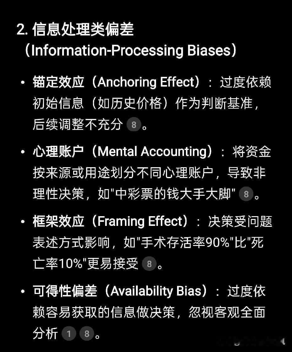 知道为什么江宁杭这大半年来输得很惨吗,因为行为金融学上的心理偏差问题,这个群体几乎踩遍了其中的坑。 他们犯的错误包括了Confirmation bias Endowment bias,Framing bias, Representative bias等等等等,太多太多,我就不打字了,我把这些偏差用截图的方式分享给大家,大家以后在做投资决策时也可以避免。 我在不同的文章中很多次反复陆续提示过这些错误,可这些人就是头铁不听,还把善意提醒当成攻击! 长期持有,长期收息,只要公司不太差,经济保持上行,当然是能赚钱的。但是这么好的大牛市行情,错过了就是错过了,也没有什么可挽回的办法了。