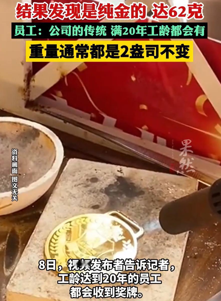 小丑竟然是自己!浙江温州,一男子嘲笑同事,在企业工龄达到20年后,公司给他来了一个“破奖牌”和奖状,可后来他才知道,这个所谓的破奖牌其实是纯金打造的,重达60余克价值数万元。当场就从嘲笑变成了嫉妒 因为是刚入职的员工,所以男子并不太了解公司的企业文化,在年会上看到老员工被奖励奖牌,他就在台下小声和旁边同事嘀咕:辛辛苦苦二十年,就给这么个纪念品,真够敷衍的 没过几天,他才从其他老员工那儿知道,那奖牌根本不是什么镀金纪念品,而是实打实的纯金打造,成色99.9%,重60多克。按现在的金价算,值好几万。而且公司每年年会都会给满20年工龄的员工发,限量制作,一人一块,绝不重复 男子当时就蒙了,心里那点嘲笑瞬间变成了羡慕,还有点酸溜溜的,后面他还把这个事当场调侃发到了网上 有网友说:我想把这个发给老板看看,这才是良心企业,员工也会尽心尽力做事 确实如此,很多公司也会讲情怀、讲陪伴、讲一起成长,真正落到实处的却不多。这家企业的做法很直接,用一块沉甸甸的奖牌,把二十年的时间标了一个清晰的价格和分量。员工拿在手里,心里自然有数 从员工角度看,这样的奖励有两个特点。一是看得见,摸得着,不是虚名。二是有时间门槛,急不来,也混不到。这会让留下来的人更踏实,也会让还在犹豫的人认真权衡值不值得长期投入。对企业来说,这种投入并不一定比频繁招人、流失、再培训更贵,反而更稳 长远来看,一家企业能走多远,不只靠业绩和规模,更看它如何对待那些陪它走过风雨的人。把该给的给到位,该记得的记得牢,比什么口号都管用