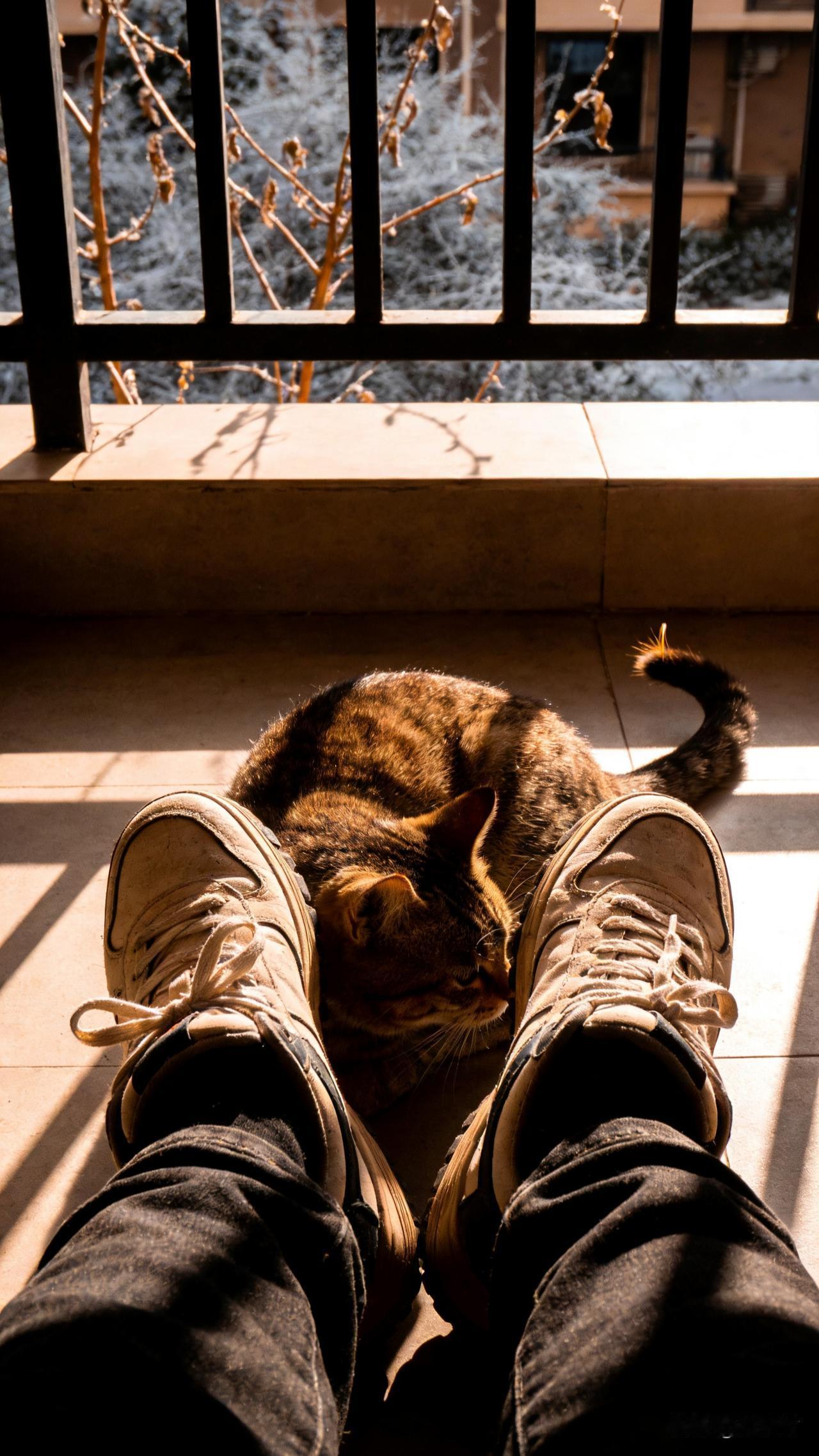 冬日生活打卡季 冬日的小确幸,藏在每一个暖洋洋的瞬间。 午后搬张藤椅坐在阳台,阳光裹着风的凉意落满身,手里攥着刚烤好的红薯,外皮焦脆内里流心,甜香漫过鼻尖。泡一壶陈皮普洱,茶汤暖黄,雾气氤氲着散开。猫咪蜷在脚边打呼噜,尾巴尖偶尔扫过鞋面。 抬眼是远处的枯枝裹着薄霜,低头是手边的茶点冒着热气。日1子慢下来,才懂冬日不是萧瑟,是温柔的留白。 不必追光,自有暖阳栖于肩头。
