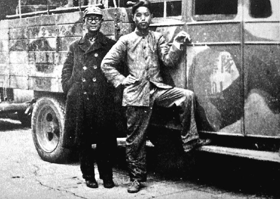 1938年,照片里的卡车斑驳粗糙,车身上隐约能看到标识的残迹,它不是普通的运输车辆,而是煤业救护队的改装运输工具,在抗战初期,这支由爱国煤业工人组成的队伍,表面是负责矿区救援的民间组织,实际却成了新四军的“秘密补给线”。 站在车旁的两人,左是叶进明,右是罗志诚:叶进明戴着眼镜,神情沉稳;罗志诚则随意地将腿搭在卡车踏板上,姿态里带着革命者的松弛。 1938年的皖南,正是新四军刚在岩寺集结、急需物资补给的时期。煤业救护队的卡车,就借着“矿区运输”的掩护,悄悄将药品、器械、粮食等物资运往新四军驻地,有时还会秘密运送革命骨干。彼时的江南敌后,日军的封锁正逐步收紧,像煤业救护队这样的民间组织,成了连接后方与新四军的“隐形桥梁”。