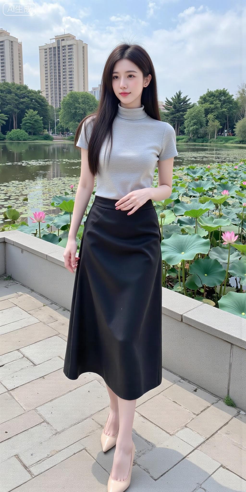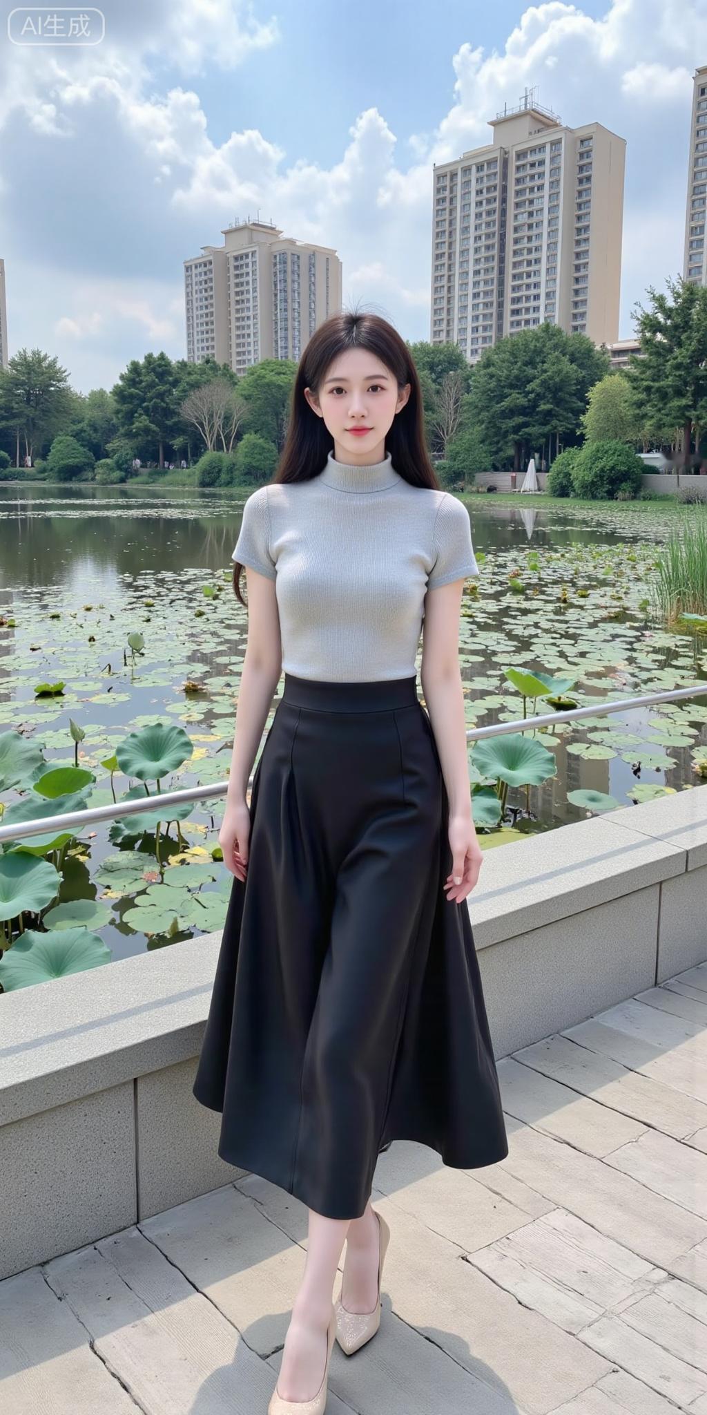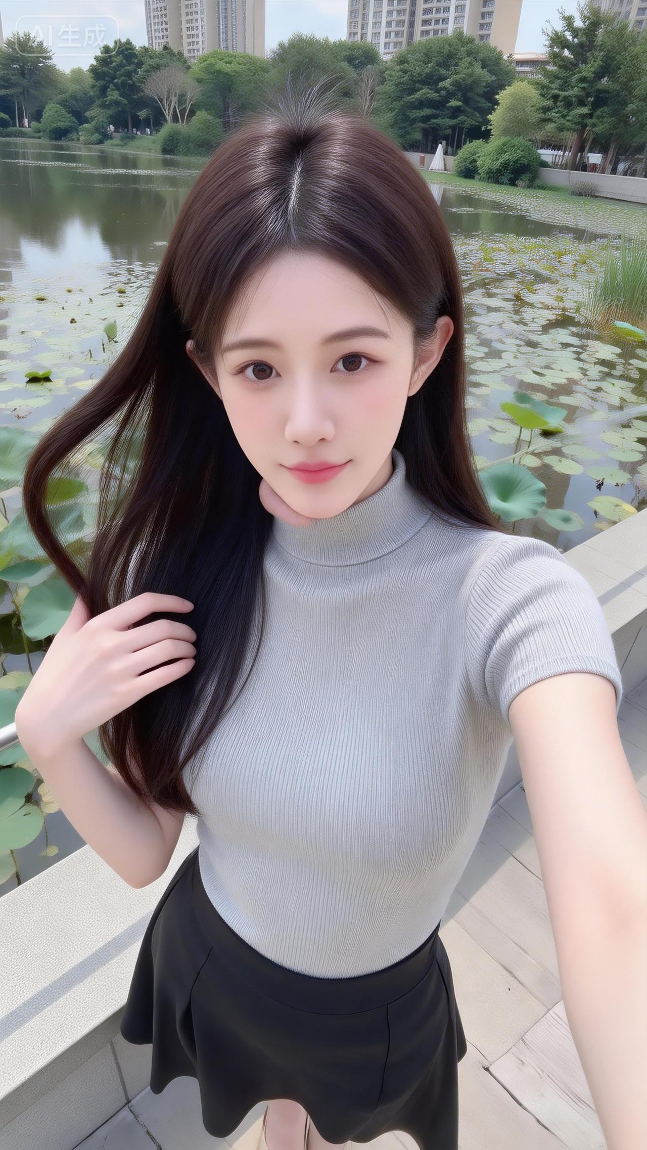 荷塘边的清冷系氧气美女 浅灰高领针织搭黑裙,简约又衬气质~长发被风轻撩的瞬间,连荷塘的绿意都成了她的温柔背景板✨ 是自带“松弛氛围感”的清甜美人没错了!