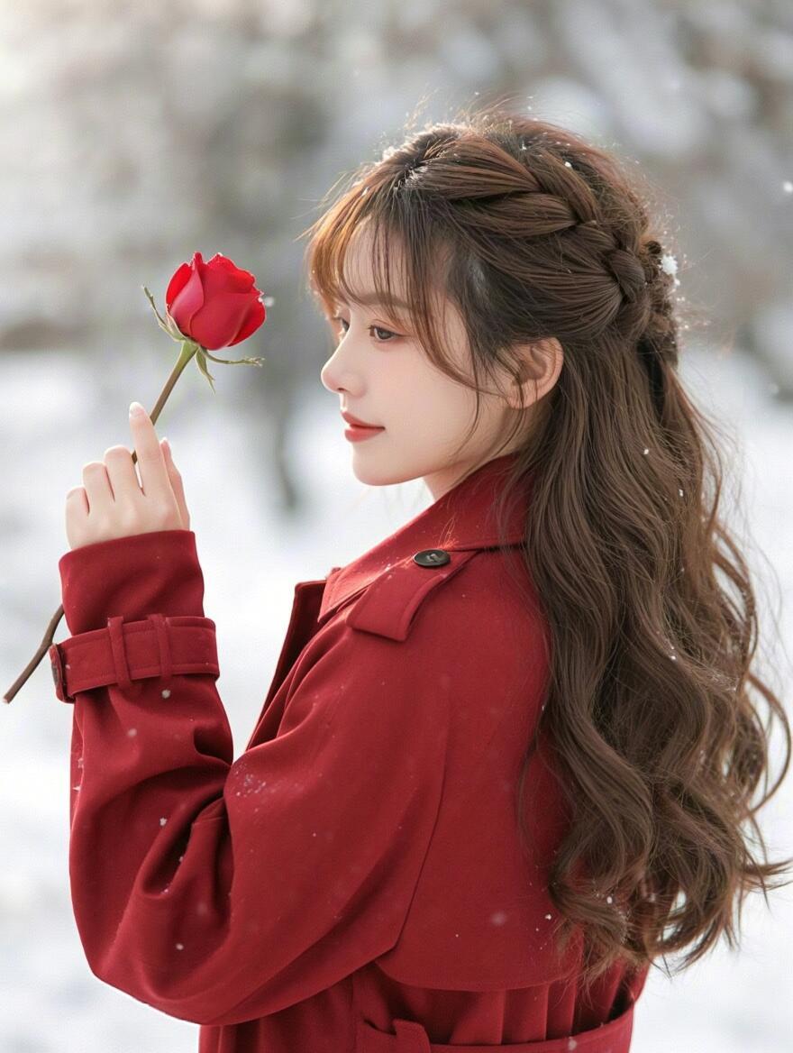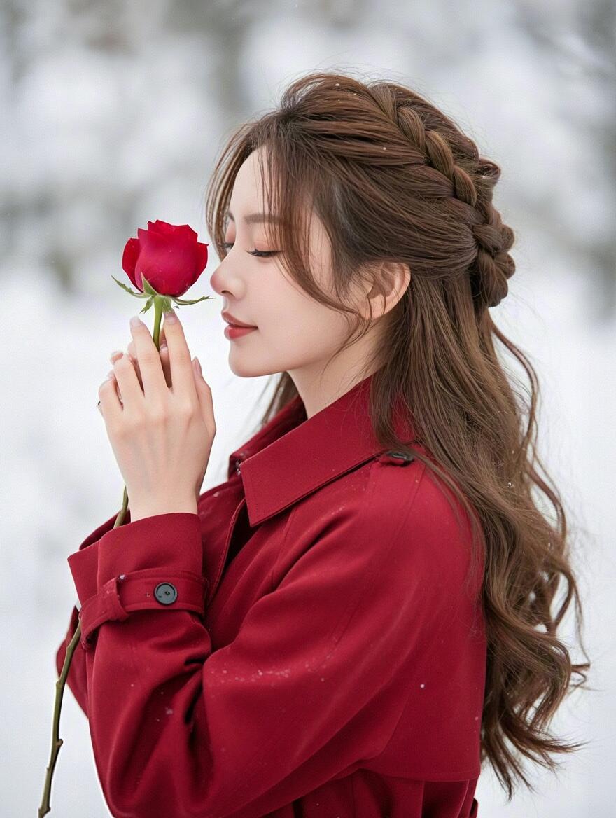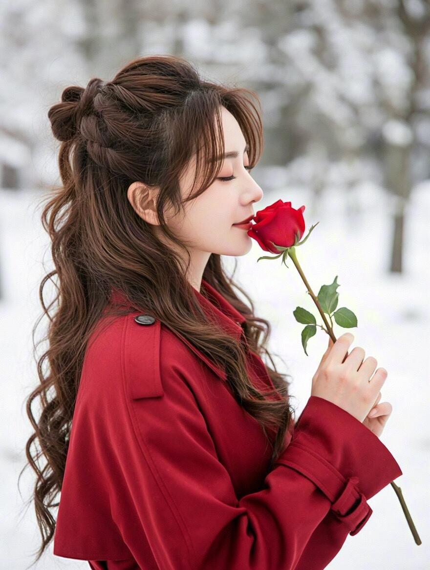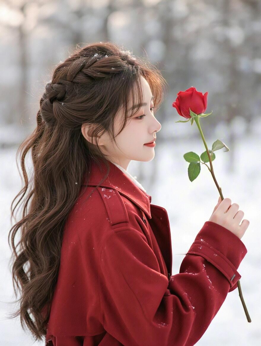 冬日雪景中,少女轻盈舞动,感受冬日暖阳。