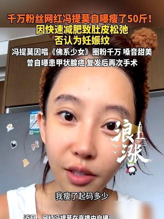 冯提莫把衣服掀开那一瞬间,我承认我愣住了。不是马甲线,不是A4腰。就是那种……很真实的,因为暴瘦50斤之后,松掉的肚皮。 起因是她在面对网友关于“生过孩子”的恶意揣测时,直接掀起衣服自证。她从120多斤一路死磕到只剩80斤,这50斤的跨度实在太猛,身体才留下了这种没来得及回缩的印记。 我更在意的是她那种坦荡的劲儿,在这个连毛孔都要磨皮磨掉的时代,她竟然敢把这种“不完美”直接怼到镜头最前面。 说实话,大家平时看多了那种光鲜亮丽的逆袭神话,却很少有人愿意把逆袭背后的真实代价,这么血淋淋地翻开给人看。 这些松弛的皮肤其实是她和过去死磕的证据。我觉得这根本不是什么瑕疵,反而更像是一种“战损装”,记录了她拼命减肥的狠劲。 那种“老娘就这样,爱咋咋地”的底气,真的比任何精修出来的马甲线都要有杀伤力。 比起那些工业滤镜下的虚假精致,这种带着生活粗糙感的真实反而让我觉得更有张力。 敢于自我消解、敢于展示不完美,这说明她已经不再需要靠那种紧绷的完美人设来维持自信了。 这一刻,我觉得这种由内而外散发出来的坦诚和清醒,真的比单纯的瘦要美得更有生命力。