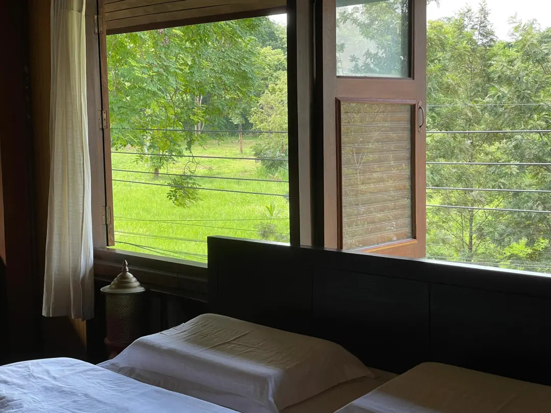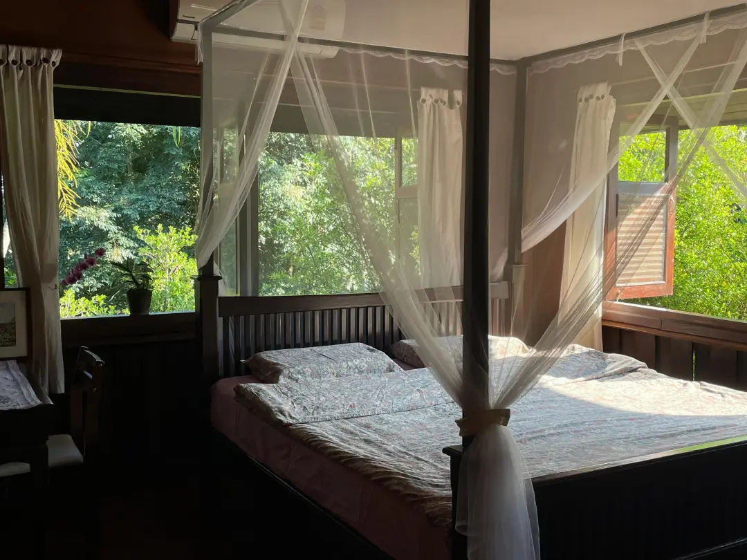 为了即将到来的假期, 最近一直在看🍃清迈住宿, 然后就在Airbnb上意外发现了这家民宿! 看到那扇绿意盎然的百年柚木窗景时, 真的是一万次心动💓,这样的房子太治愈了。 这家民宿在⭐️Airbnb上的名字叫—— 清迈大学附近可步行至艺术村的兰纳风木房子泳池别墅(2晚起免费接机服务) 位置非常好,位于清迈大学后门附近, 闹中取静的同时,去核心景点也非常方便快捷, -🚗开车去宁曼路10分钟左右 -🚗开车去清迈古城10分钟左右 -🚶步行可达“Baan kang wat”清迈艺术村集市 -🚶晚上可以步行去清迈大学后门的夜市,吃喝玩乐很齐全 -🏬周边生活也很方便,咖啡馆啊、餐厅啊、商店啊什么的都有 这家民宿从内到外都让我感受到满满的治愈❤️‍🩹 民宿是一栋拥有60多年历史的柚木双层别墅, 整套别墅里面有30多面窗户🪟, 每一扇窗户外面都绿意盎然,生机勃勃, 望着每一扇窗户发呆成了我的最新爱好, 800多平米的地面全部实木铺成, 睡在柚木卧室中,或者有时候躺在地板上, 都能闻到好闻的柚木芳香, 让人心里特别踏实、安宁。 从屋子里走出来就是非常漂亮🍃的花园, 穿着舒服的白色棉麻连衣裙, 在⛲️花园里散步,或者坐在庭院里喝茶, 微风吹动着裙角,说不出的惬意畅快。 民宿一共有4个卧室,5张双人床,5个卫生间, 1个客厅,1个饭厅,1个厨房,2个露台, 还有1个小泳池🏊,最多可以住10位房客。 洗衣机、电视机、网络、空调、冰箱什么的生活设施齐全, 厨房可以做饭,户外庭院里也可以烧烤。 👧房东小姐姐人很温柔,回复问题超及时! 2晚起住还提供接机, 民宿里还有镇宅小猫咪,性格也超好,是个小粘人精🥹。 📷部分图片来源于房东小姐姐授权发布 本次文章图文来源于Airbnb及评论区