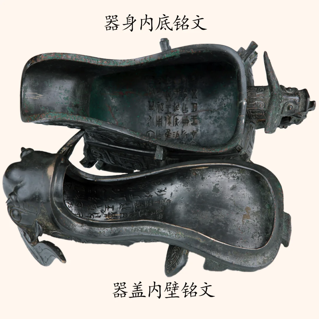 器盖同铭四十字,器铭六行,盖铭四行,铭文:隹(唯)五月,王才(在),戊(子),令乍(命作) 册折兄(贶望)土于相(侯),易(锡)金易(锡)臣,(扬)王休,隹(唯)王十又(有)九祀,用乍(作)父乙(尊),(其)永寳。木羊册。