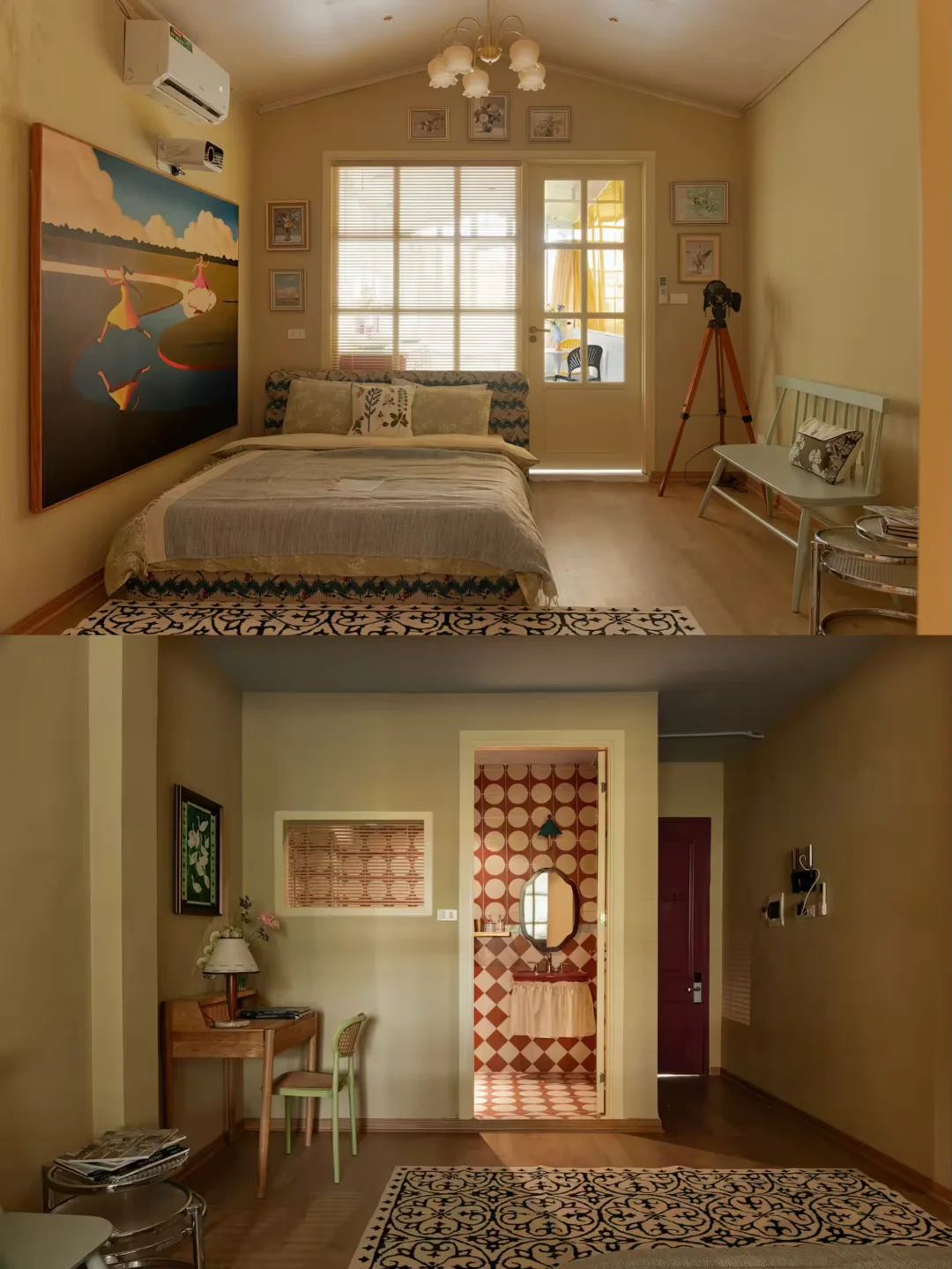有些民宿只看过照片就知道,完!全!是我的菜!朋友这次在河内Hai Bà Trưng区住的这间Airbnb,法式复古风格+鹅黄治愈系,让人一眼沦陷 💛 🏠民宿:Cape Ann * 10 mins to Hoan Kiem lake 🛏️设施:1间卧室,1张床,1个卫生间,可以住2位客人 💰参考平均价格:约350rmb/晚 📝出门即风景, 周边玩乐清单 🚶步行大约15分钟左右,就能抵达还剑湖,清晨在这里散步、晨跑,享受水波、树影的美好 🚶‍♂️步行大约18分钟左右,就能抵达火车街,抓准时间跟火车合影,拍出人生照片 🚶步行大约10分钟左右,可以到越南历史博物馆、河内歌剧院,感受当地的文化历史 🚶‍♂️距河内老街1.9公里,步行约15分钟就能到 ☕️周围生活环境安全且有各种便利设施,能找到很多餐厅、咖啡、便利店 🏍️骑摩托一日游:可以跟房东租摩托车,骑去西湖喝下午茶,Long Biên桥看夕阳 🏠房间真的绝美,仿佛置身小巴黎 -卧室:整体都是淡淡的鹅黄色,让人非常放松,花瓣形的吊灯和墙上的挂画也非常精美 -浴缸:有一个非常独特的彩绘浴缸,摆放在四周都是窗户的角落,窗外是郁郁葱葱的绿植 -浴室:红+白的老派花砖,仿佛进入韦斯·安德森执导的电影 -观影:有投影仪,可以窝在床上惬意的享受一部电影🎬,幸福感拉满 📝 小Tips -设施齐全:浴缸、吹风机、洗发水、热水淋浴、沐浴露、空调、网络、冰箱、微波炉、电梯等都有 -为了保护环境,这家民宿不提供牙刷、牙膏、调味品哦 📷本次文章图文来源于Airbnb及评论区
